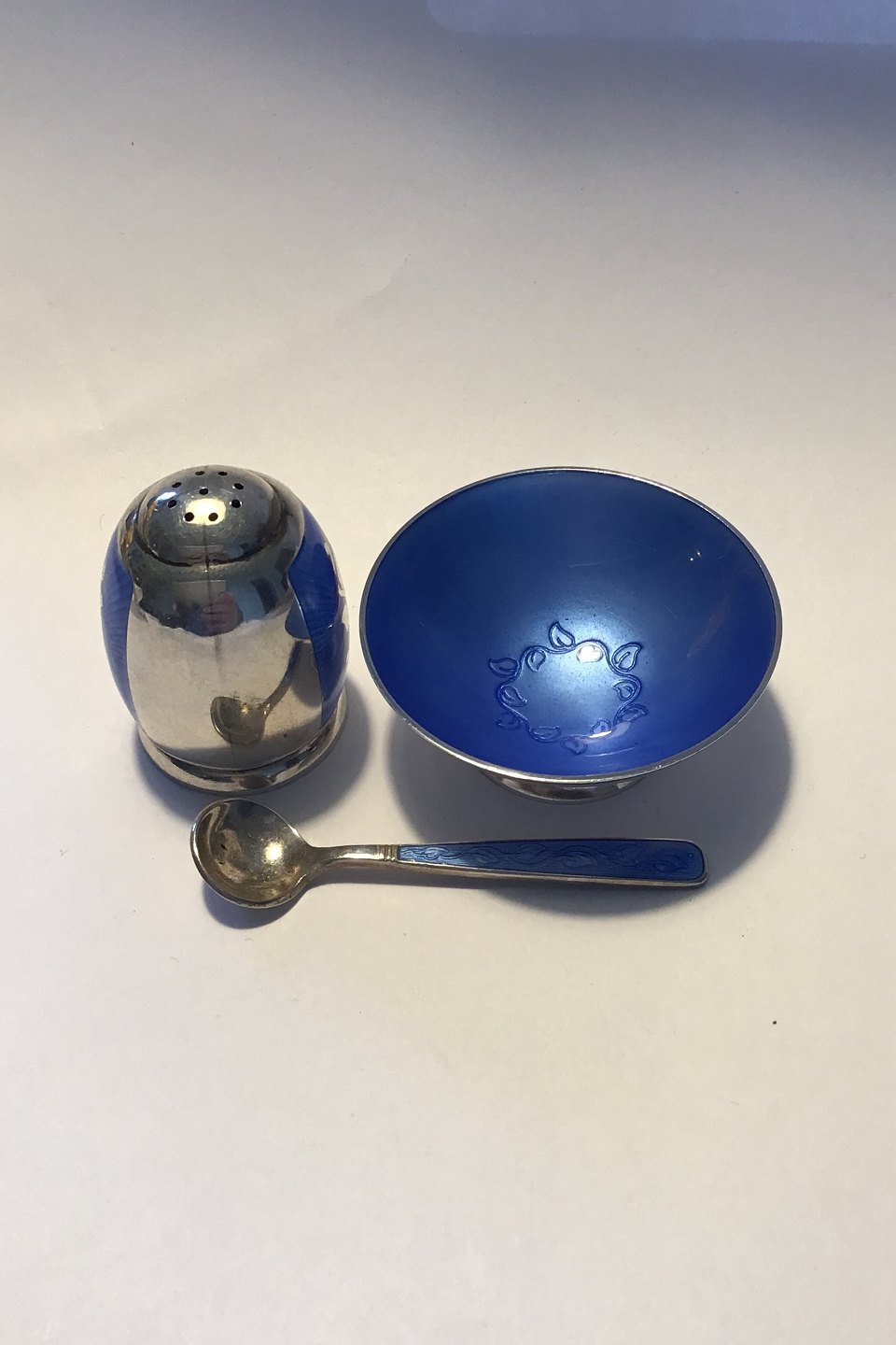 Volmer Bahner Sterling Silver Salt&Pepper set Blue Enamel