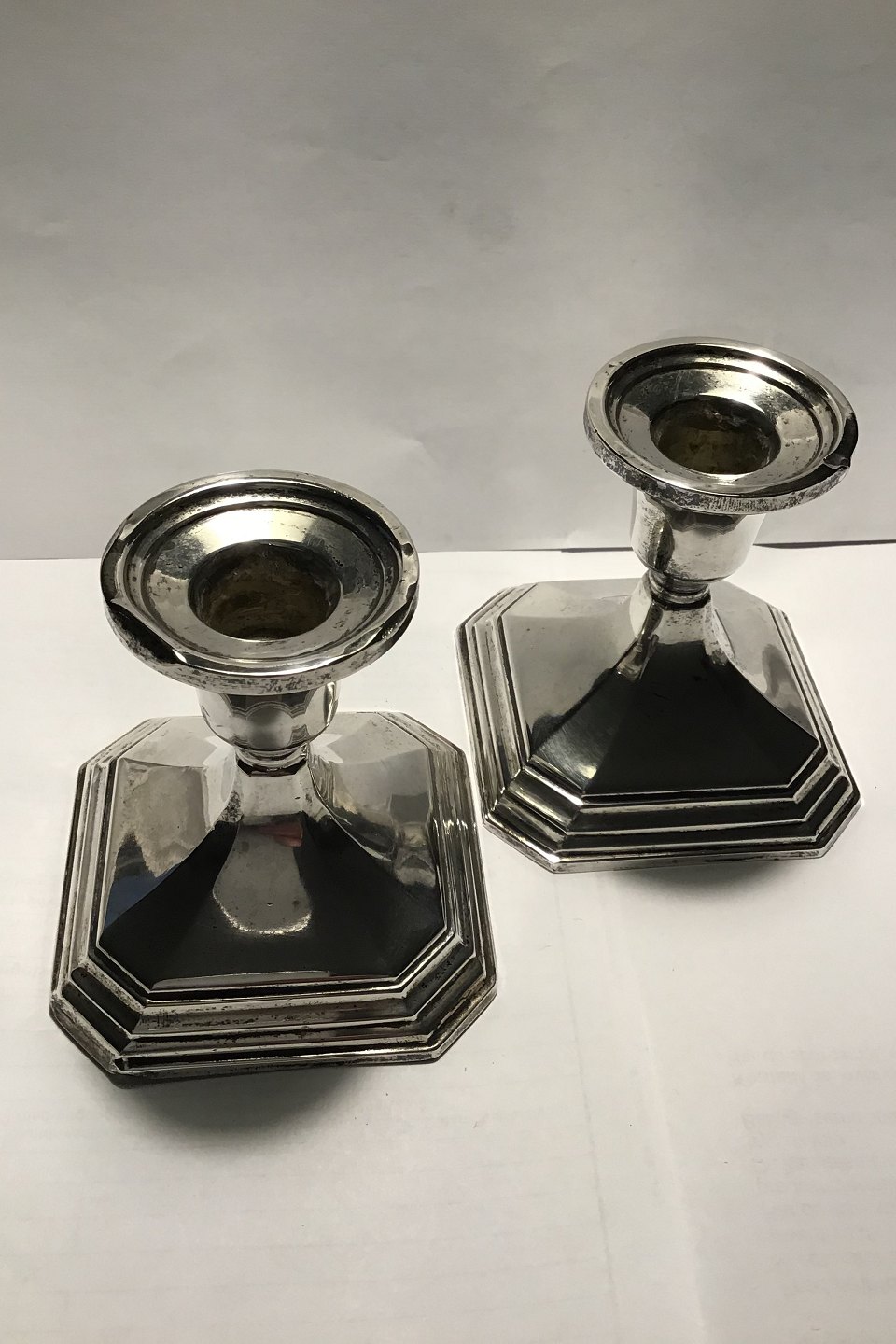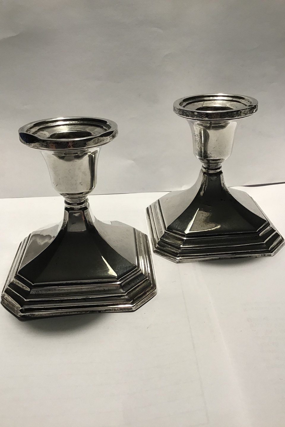 KMK Sterling Silver Candlesticks Measures H 9 cm(3 35/64 in) Combined Weight 660 gr /23.25 oz(Weighted)(Signs of usage)
