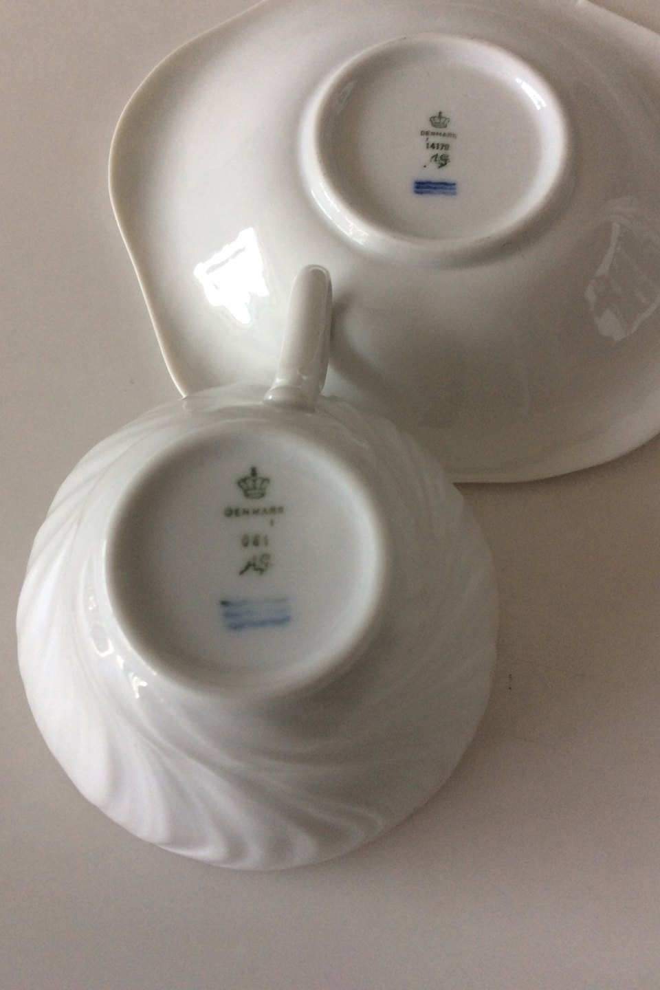 Royal Copenhagen Hvid Konkylie Tekop / Stor Kaffekop og Underkop No 14194 / 081. Kop 9 cm Ø. Design Arje Griegst
