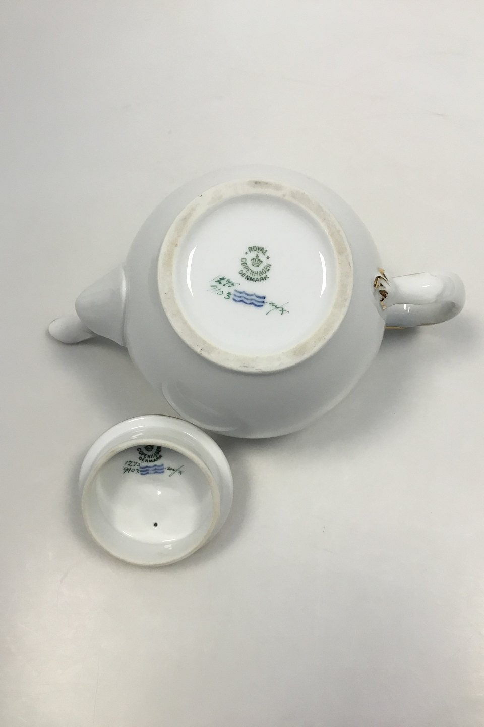 Royal Copenhagen White Porcelain with Gold Tea Pot No 1275/9103. Measures 24 cm / 9 29/64 in.