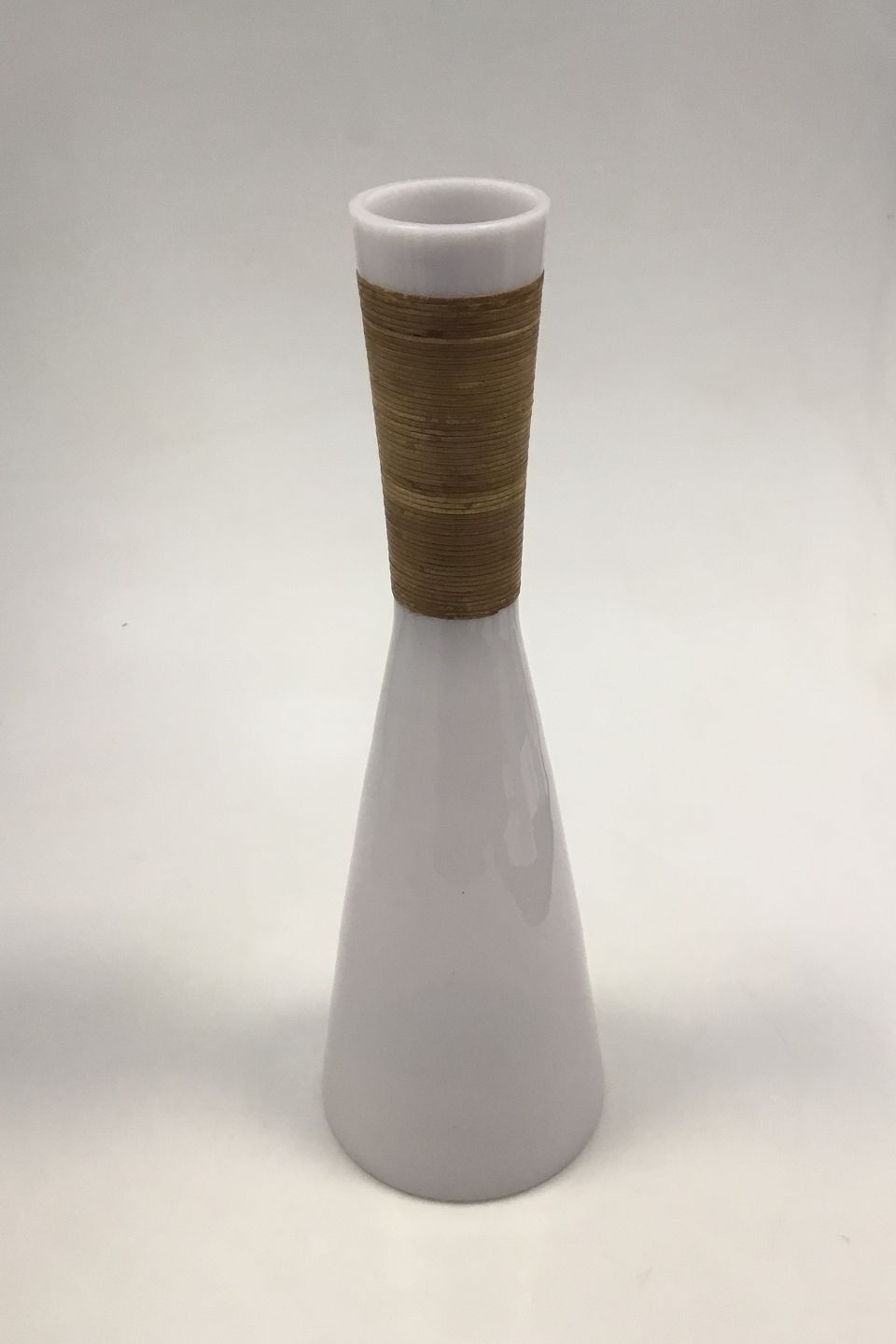 Kastrup Glassworks Opaline Carafe with bamboo wrapping without Kork. Jacob E. Bang 1957. Measures 40 cm / 15 3/4 in.