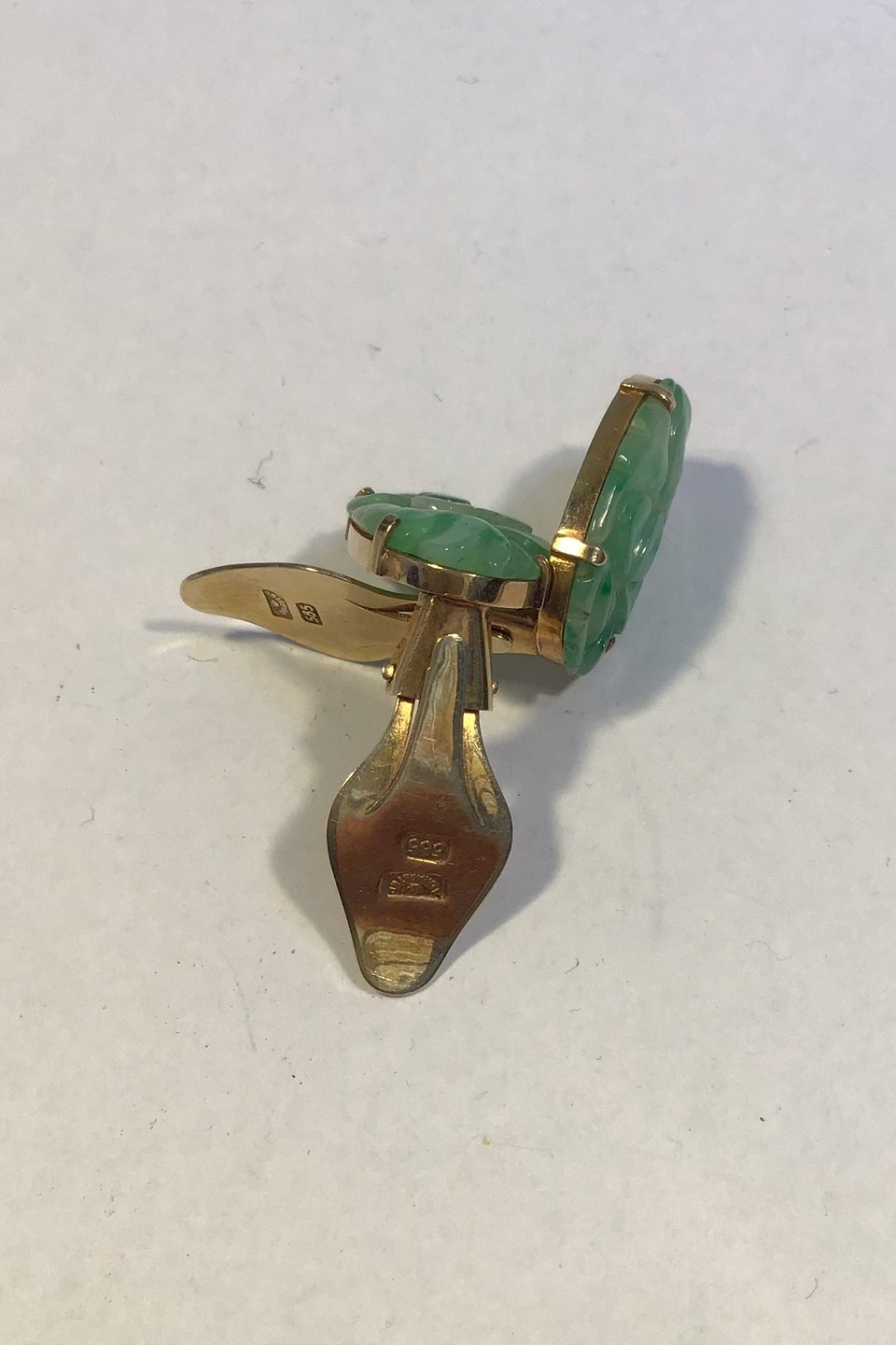 A Dragsted 14 K Guld Earrings (clips) with Jade Measures 2 cm x 1.2 cm(0 25/32 in x 0 15/32 in) Combined Weight 6.2 gr/0.22 oz
