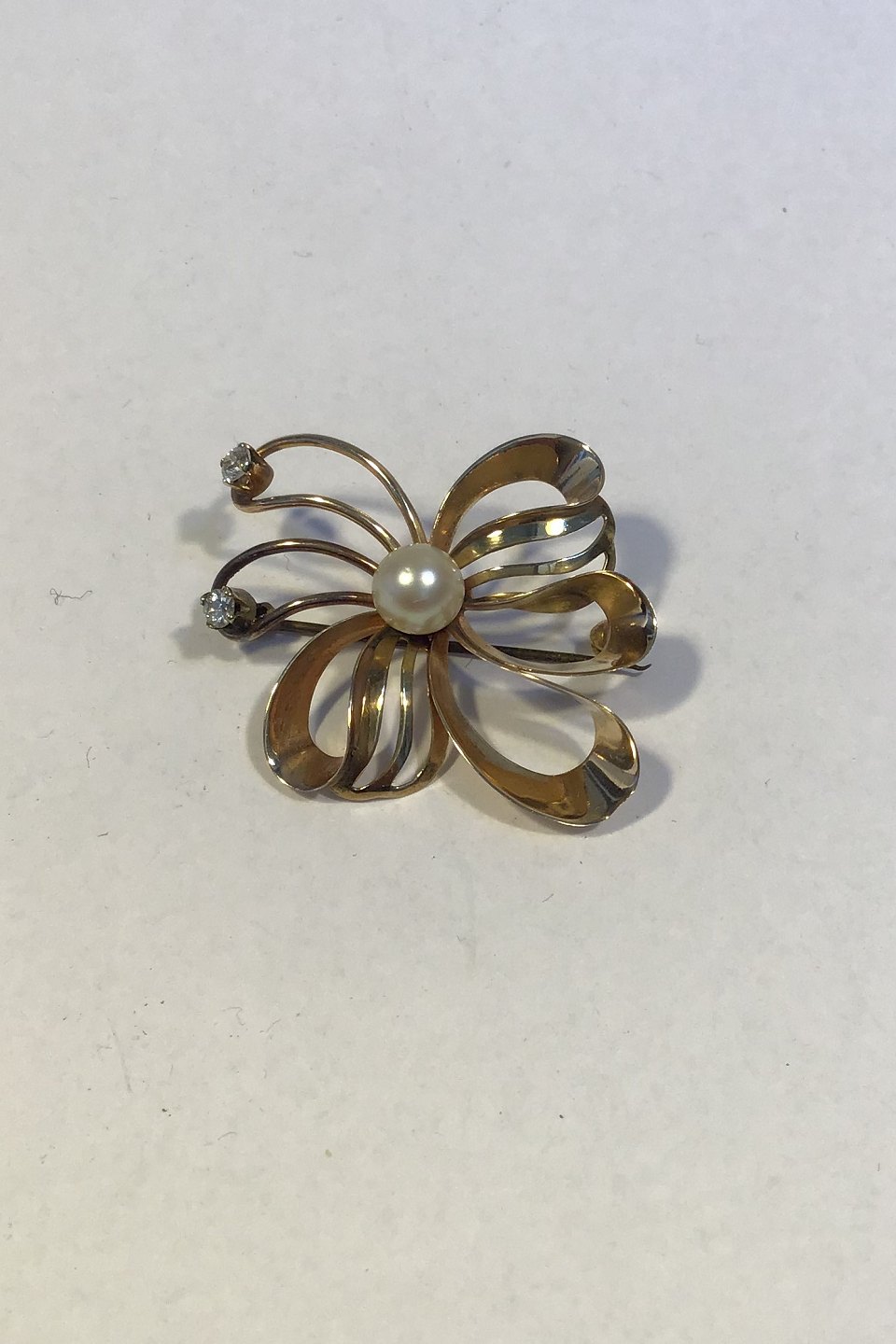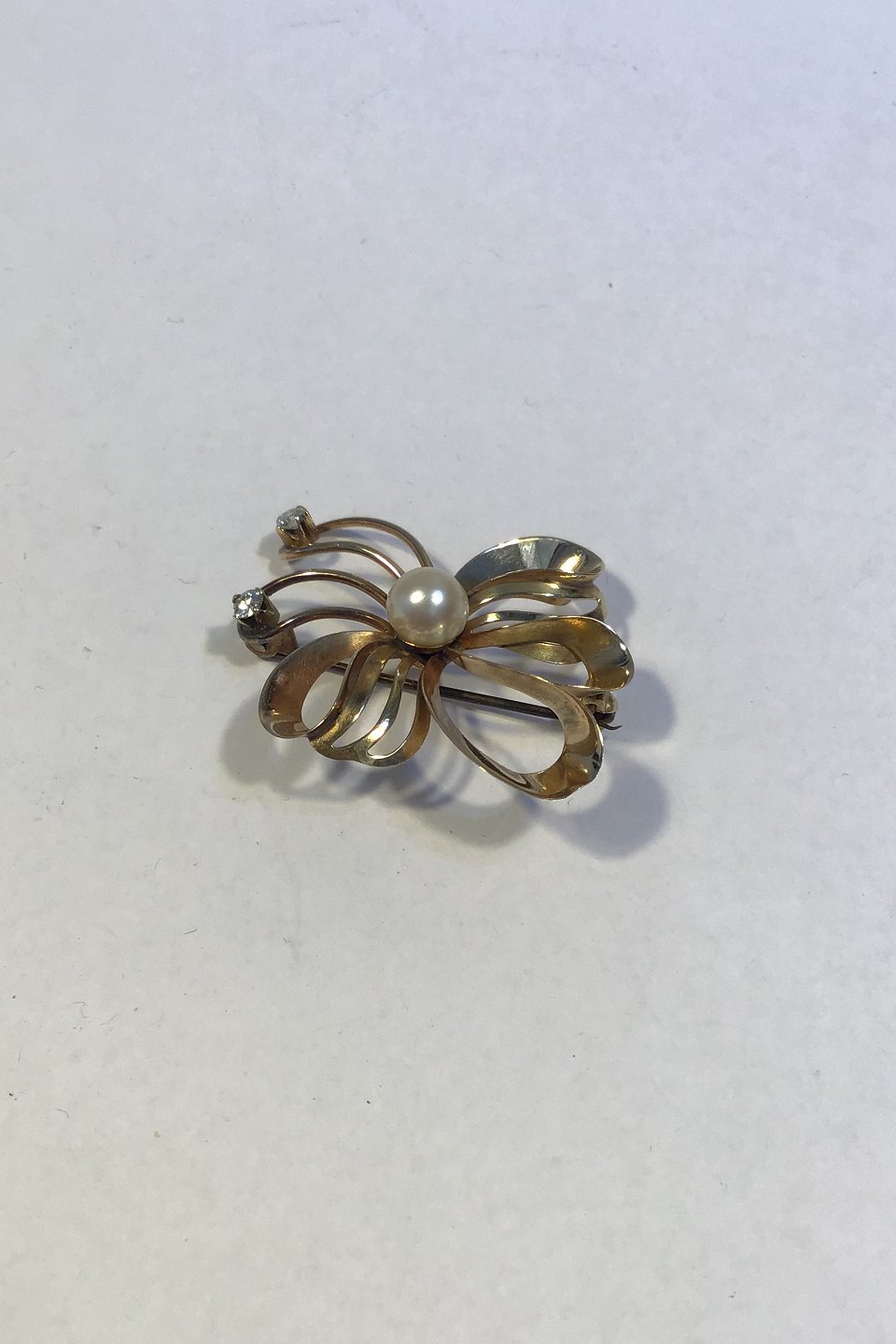 Hermann Siersbøl 14 K Gold Brooch with Diamonds Measures 2.8 cm x 3.5 cm(1 7/64 in x 1 3/8 in) Weight 4.3 gr /0.15 oz