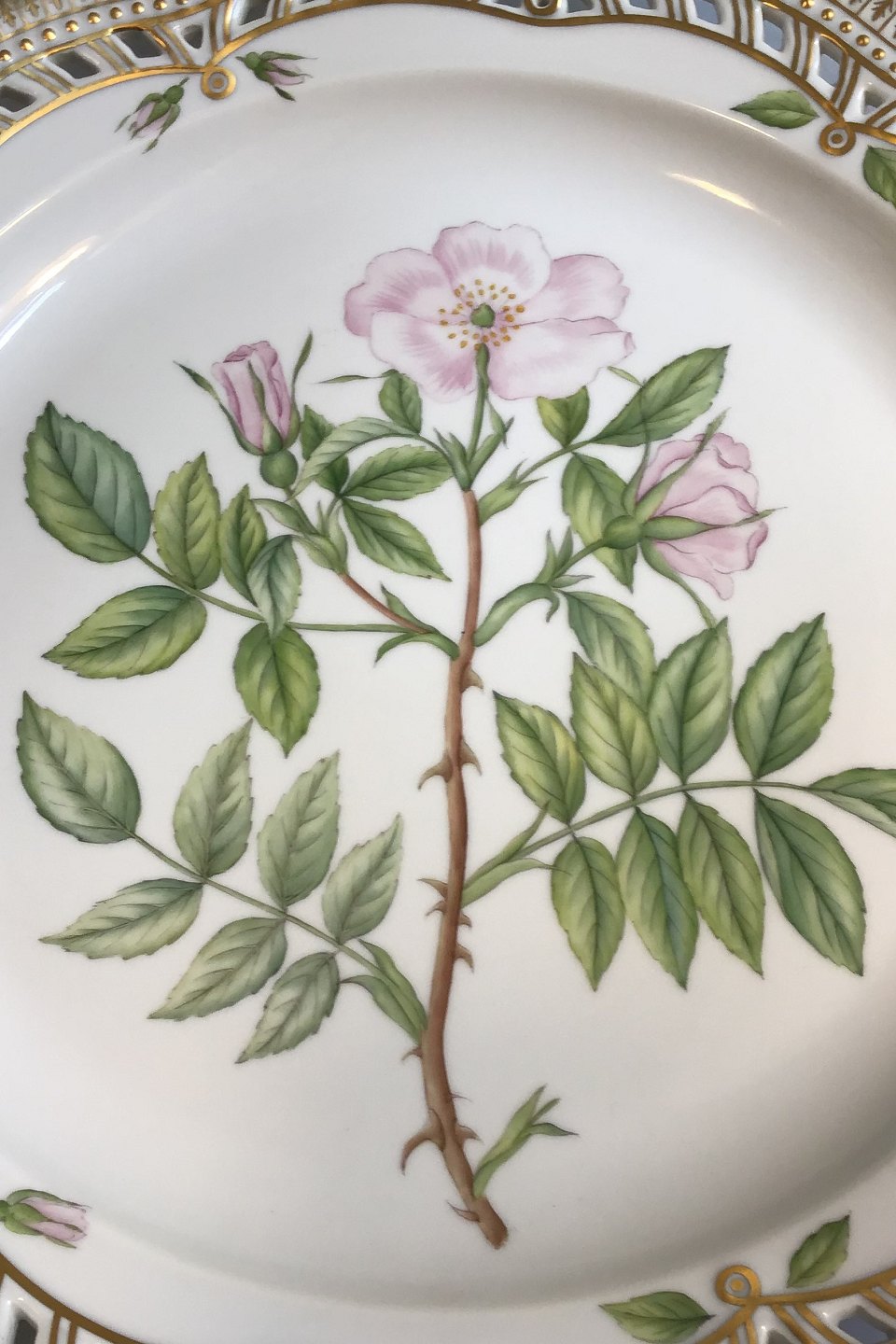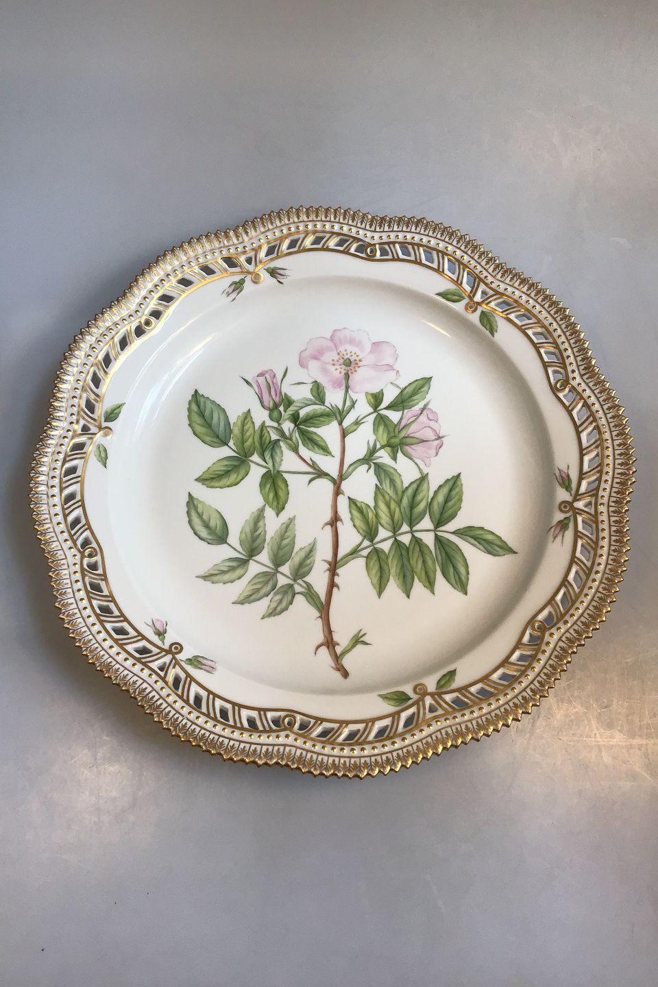 Royal Copenhagen Flora Danica Stor Rundt Fad No 20/3528. Latinsk navn: "Rosa Villosa Horn" Måler Diam 33,5cm