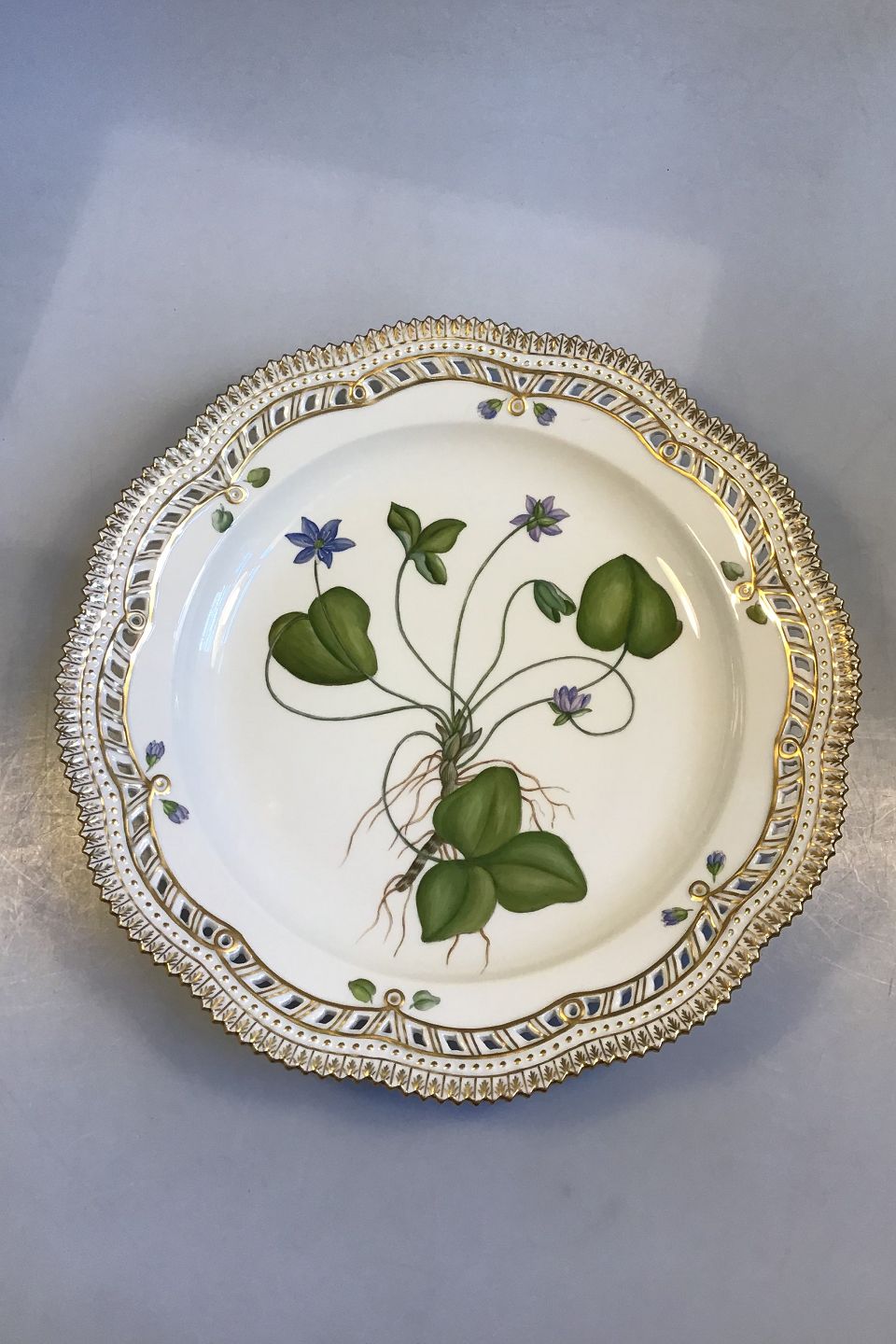 Royal Copenhagen Flora Danica Charger plate with pierced border No 20/3574. Latin name: "Anemone Hepatica L."Measures 28 cm / 11 1/32 in. 1st Quality.