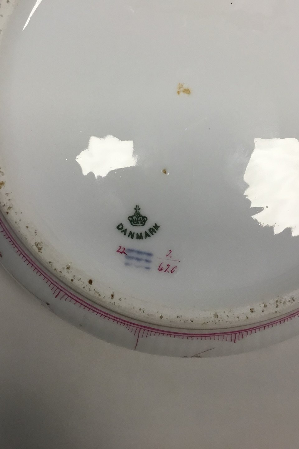 Royal Copenhagen Musselmalet Purpur med guldkant Halvblonde Lågfad No 2/620. Måler 13 cm x 22 cm