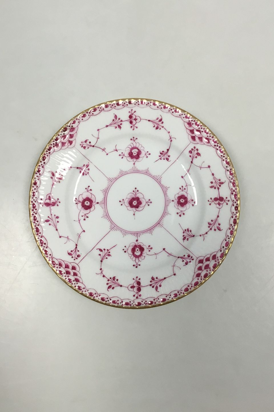Royal Copenhagen Musselmalet Purpur med guldkant Halvblonde kagetallerken No 2/575. Måler 15,3 cm
