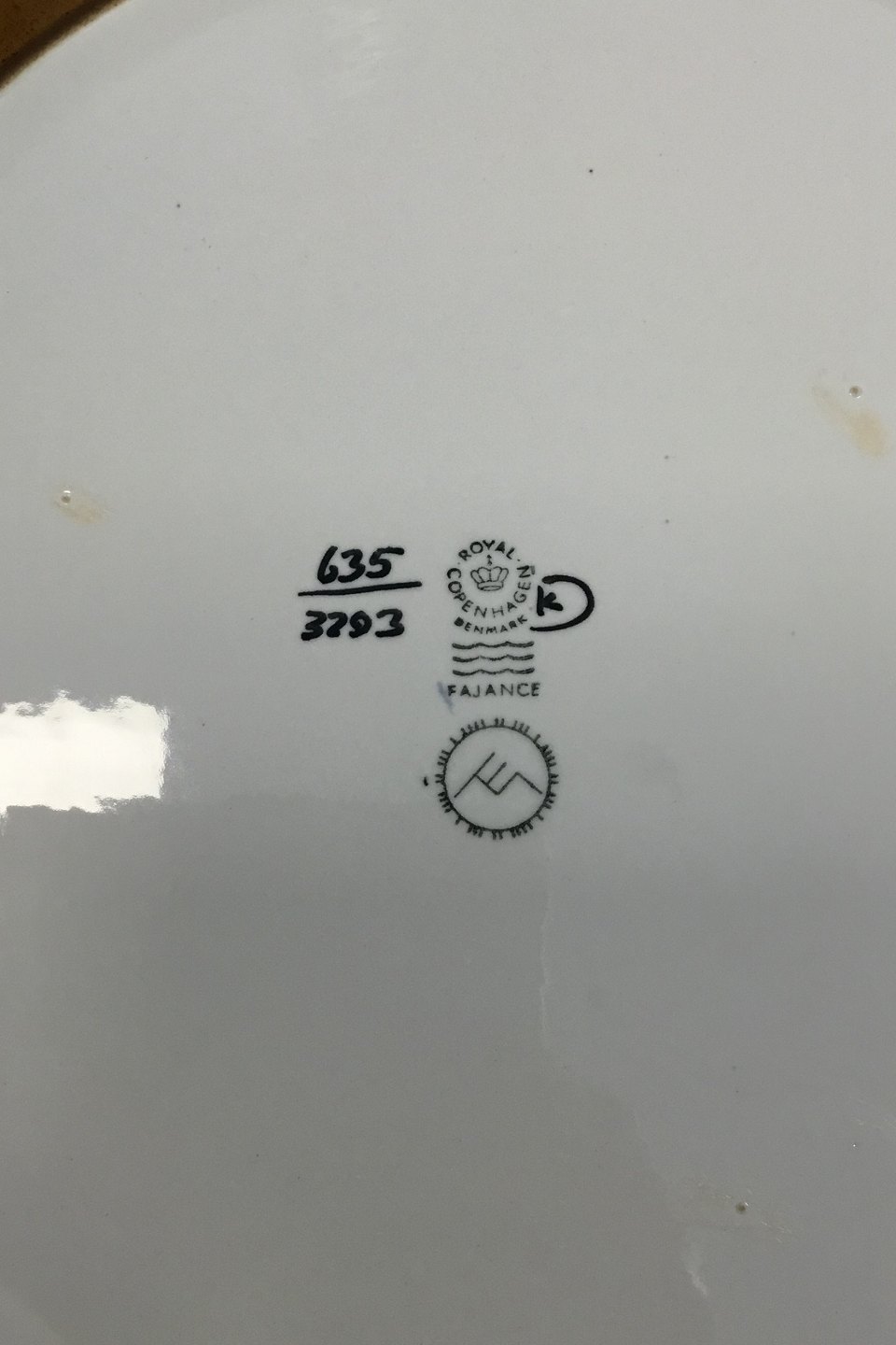 Royal Copenhagen Fajance fad No 635/3293. Designet af Ellen Malmer. Måler 32,5 cm
