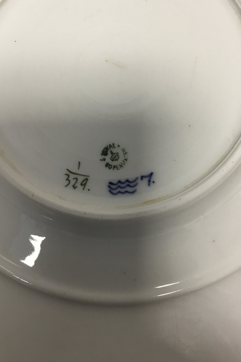 Royal Copenhagen Musselmalet Riflet "Hotelporcelæn" Frokosttallerken No 329. Med stempel fra 1889-1922. Måler 22,5 cm