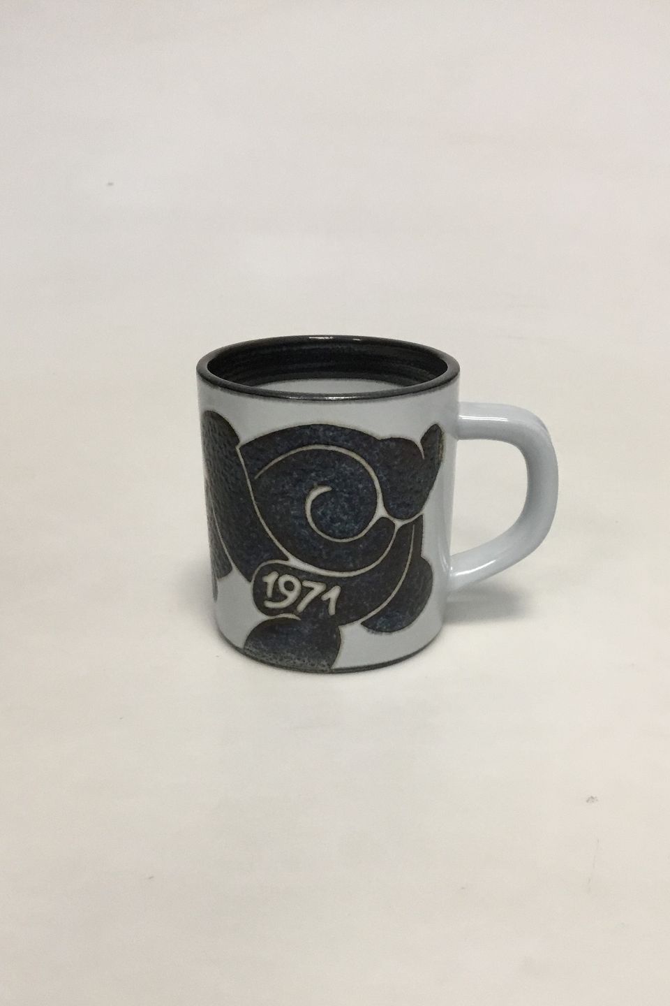 Royal Copenhagen Small Annual Mug 1971. Designed by Hans Andersen. Measures 7.5 cm / 2 61/64 in.