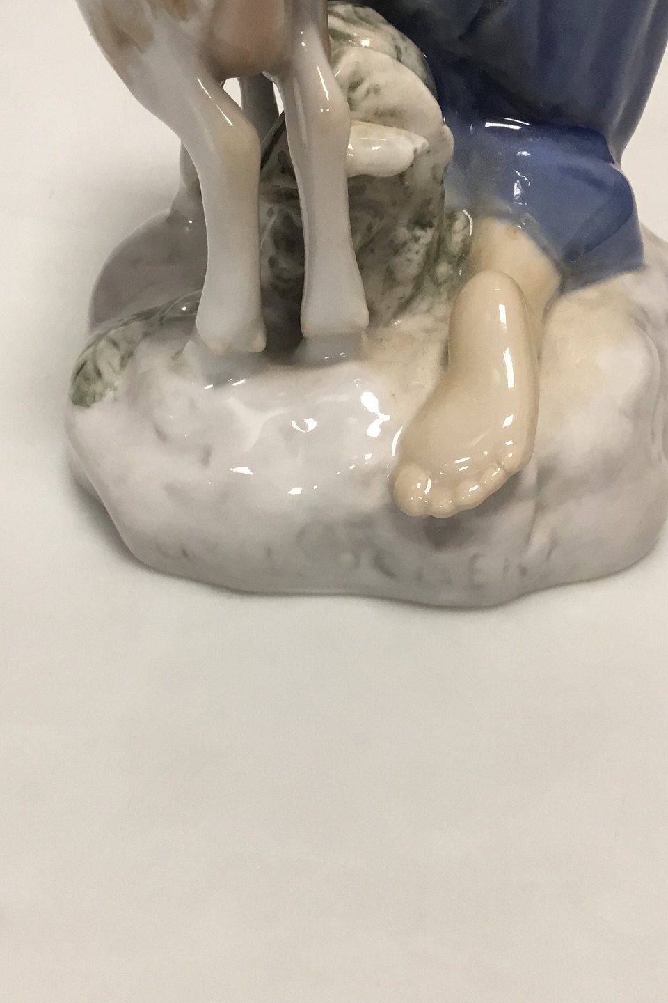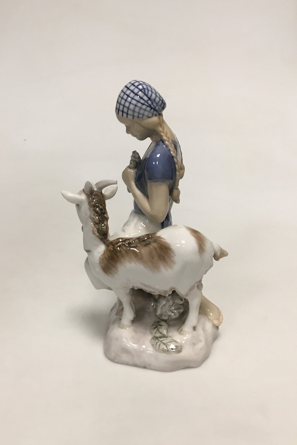 Bing & Grøndahl Figur af Pige med gedebuk No 2180. Designet og signeret af Axel Locher. lille afslag på det ene horn. Måler 18 cm