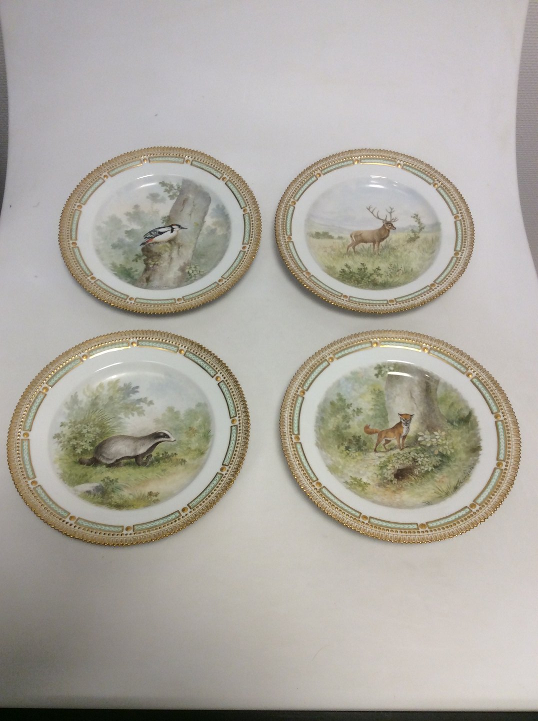 Set of 12 Royal Copenhagen Flora Danica Game Dinner Plate No 3549.