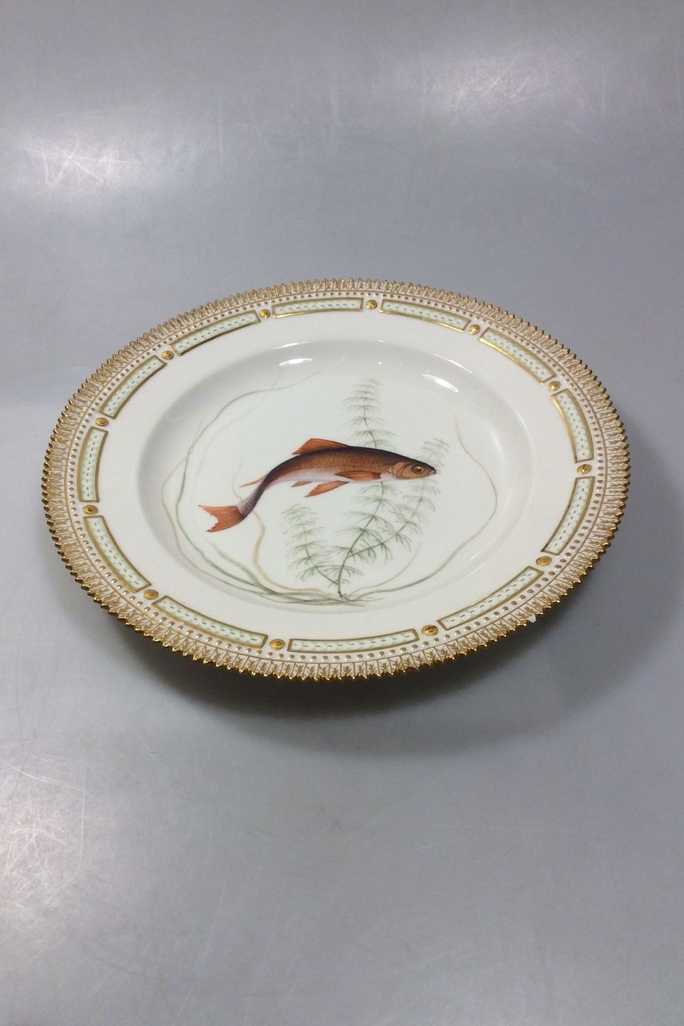 Royal Copenhagen Flora Danica Fisketallerken No 19/3549. Latinsk navn: Leucicus idus. Måler 25,8 cm