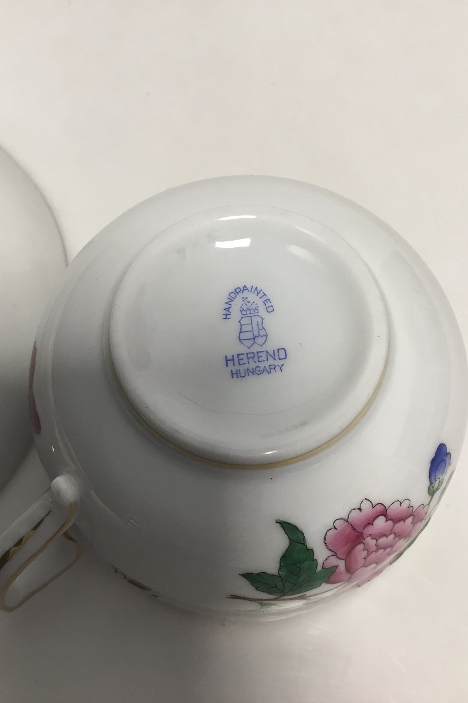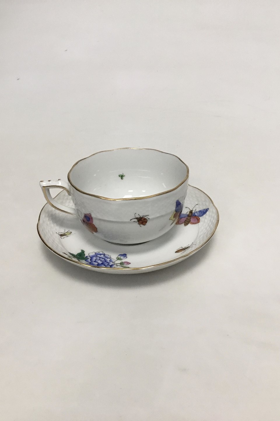 Herend Porcelain Hand-painted coffee cup and saucer with insects, butterflies and flower. Slight wear on gold rim. Diameter cup excl. handle: 8,5 cm (3 11/32"), saucer diameter: 13,5 cm (5 5/16").