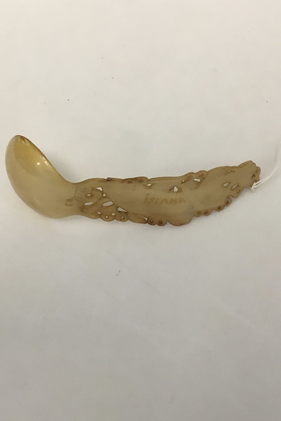 Islandsk udskåret ske i horn, fiskemotiv. L: 12 cm
