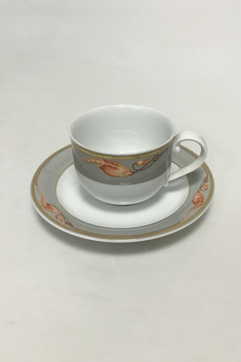 Royal Copenhagen Magnolia, Grå med rød dekoration Kaffekop med underkop No 072/073. Måler Kop: 6 cm x 8 cm dia. Underkop: 14,7 cm
