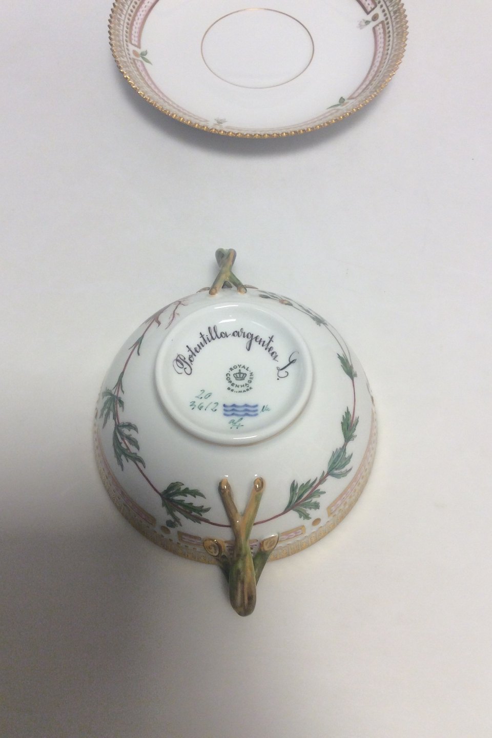 Royal Copenhagen Flora Danica Bouillon Kop med underskål No 20/3612 Latinsk Navn Potentilla argentea Holder 40 cl.