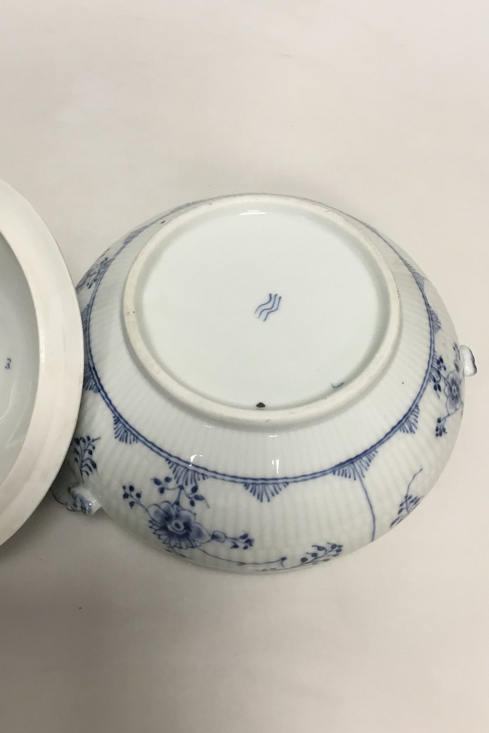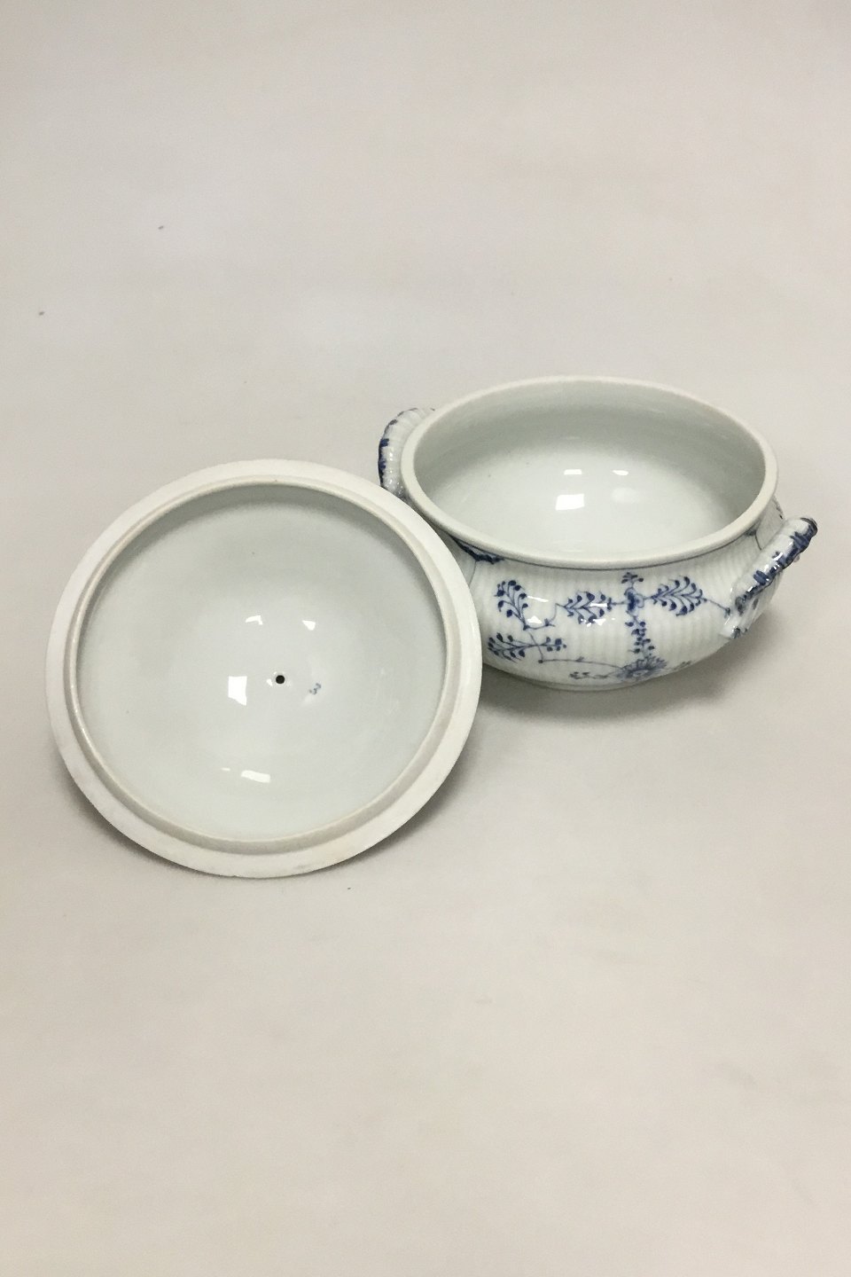 Royal Copenhagen Antik Musselmalet Riflet terrin. Afslag på kanten af låg. Måler 15 cm