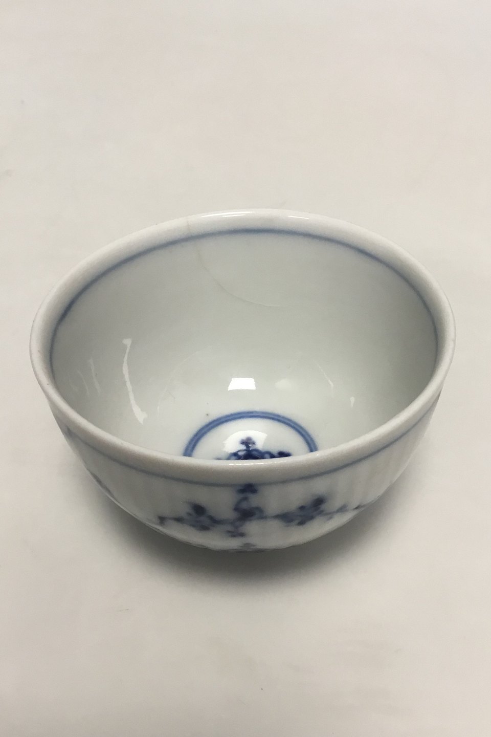 Royal Copenhagen Antique Blue Fluted Plain Small Bowl. Hairline crack. Measures 5 cm / 1 31/32 in. x 8 cm / 3 5/32 in. dia.