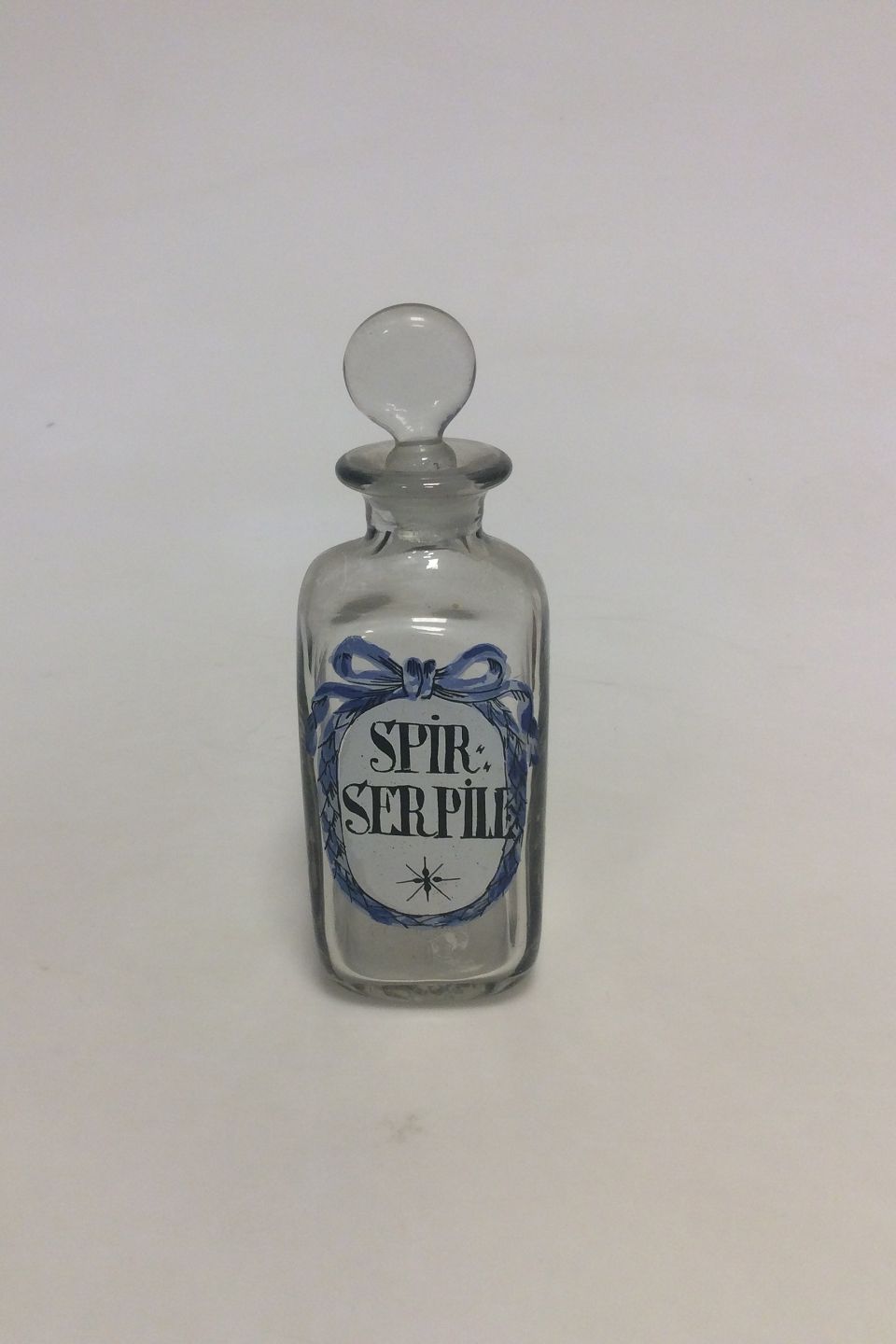 Holmegaard Pharmacy Jar with the text "SPIR SERPILL" from 1990.