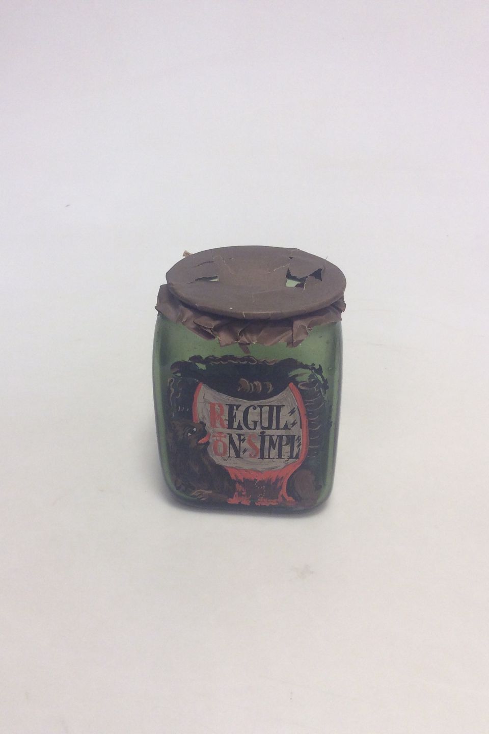 Holmegaard Pharmacy Jar with the text "REGUL ON SIMPL" from 1989.