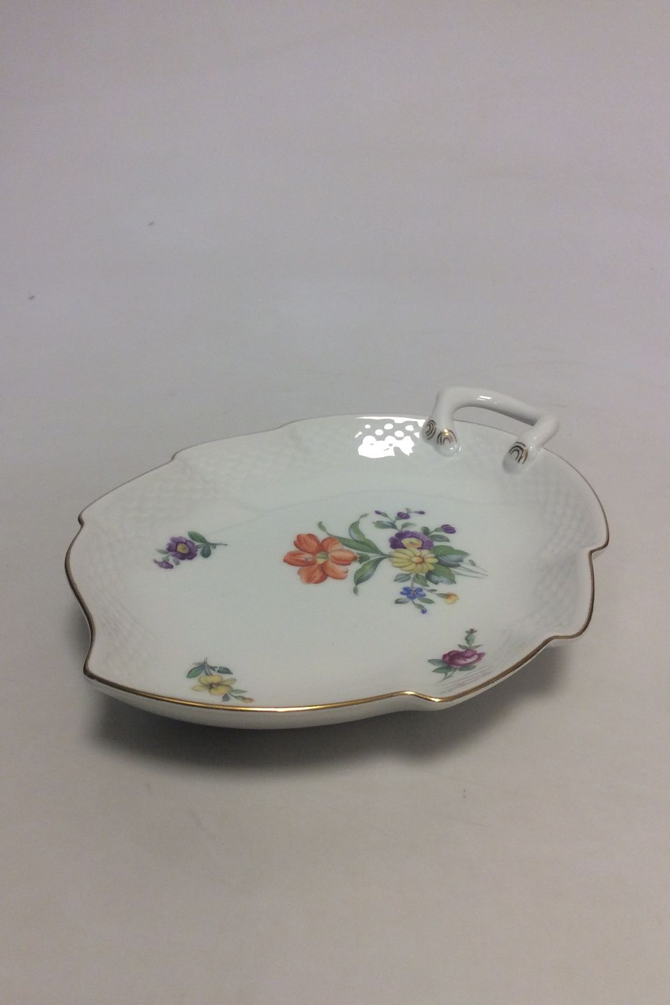 Bing & Grondahl Saxon Flower, White Leaf Shaped Dish No 199. Measures 25 cm / 9.84 in.