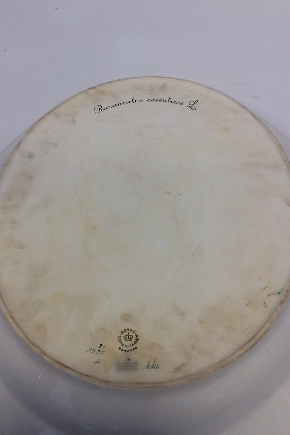 Royal Copenhagen Flora Danica Stor Servingsfad No 3520. Latinsk navn: Ranumculus caccubiens L. Måler 46,5 cm x 35 cm