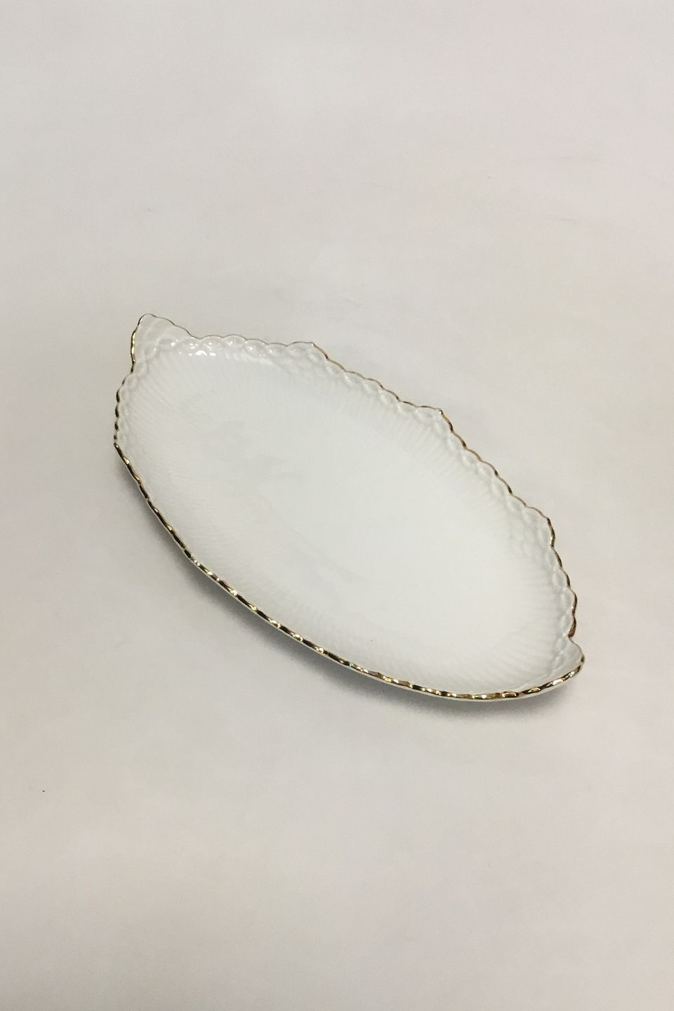 Royal Copenhagen Tradition Hvid Halvblonde m. Guld Aflangt kagefad No 613. Måler 24,5 cm x 12,5 cm