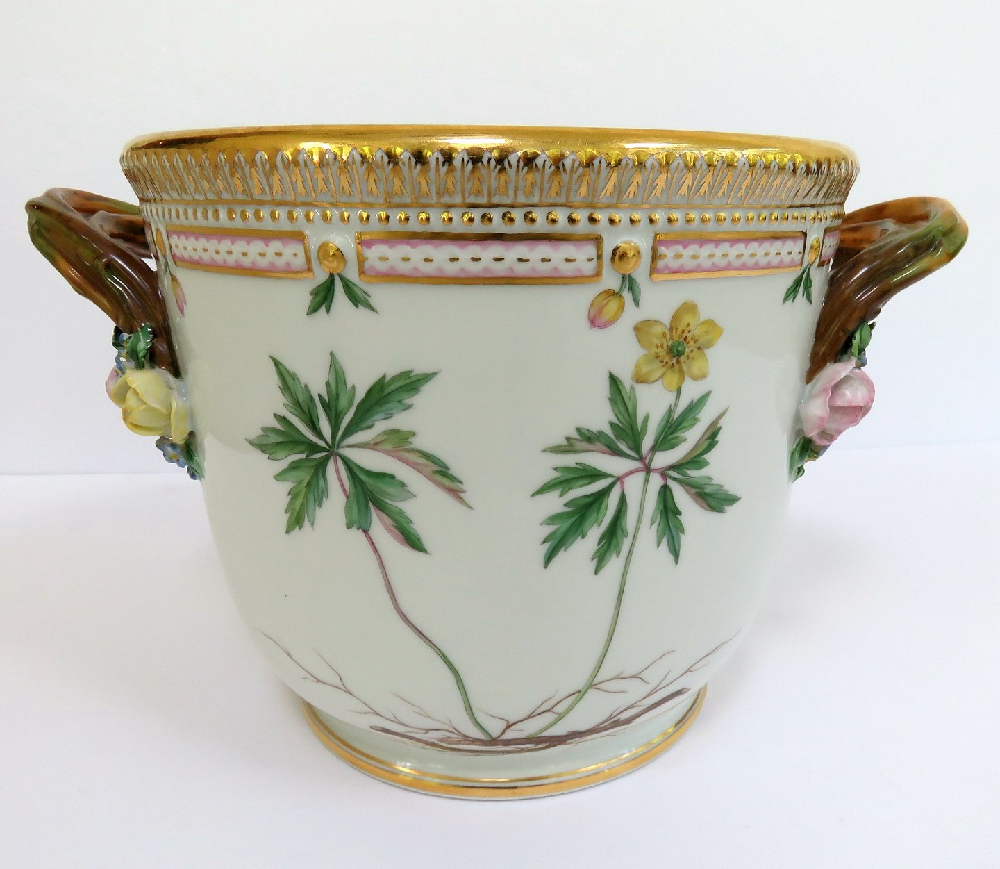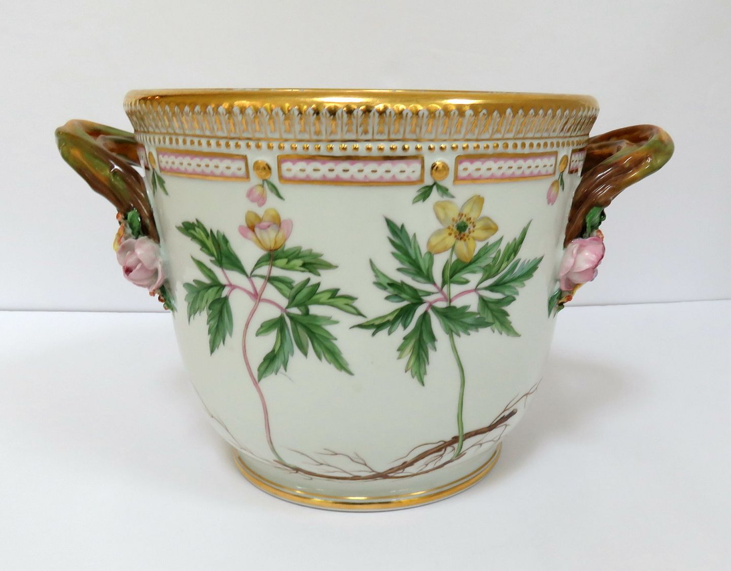 Royal Copenhagen Flora Danica Large Wine Cooler No 20/3569. Measures 14.2 cm / 5.59 in. x 25.5 cm / 10 in. 1st Quality. Anemone ronuncoloidi Nemorosa Kze