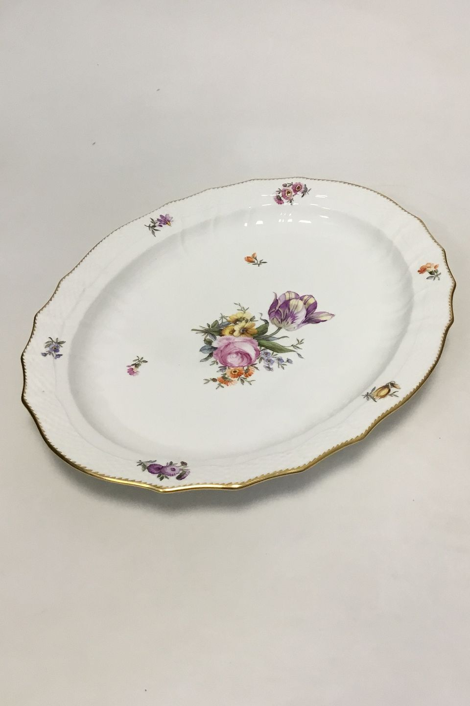 Royal Copenhagen Fuld Saksisk Blomst Stort ovalt fad No 1557. Måler 40,5 cm(11 15/16 in.)