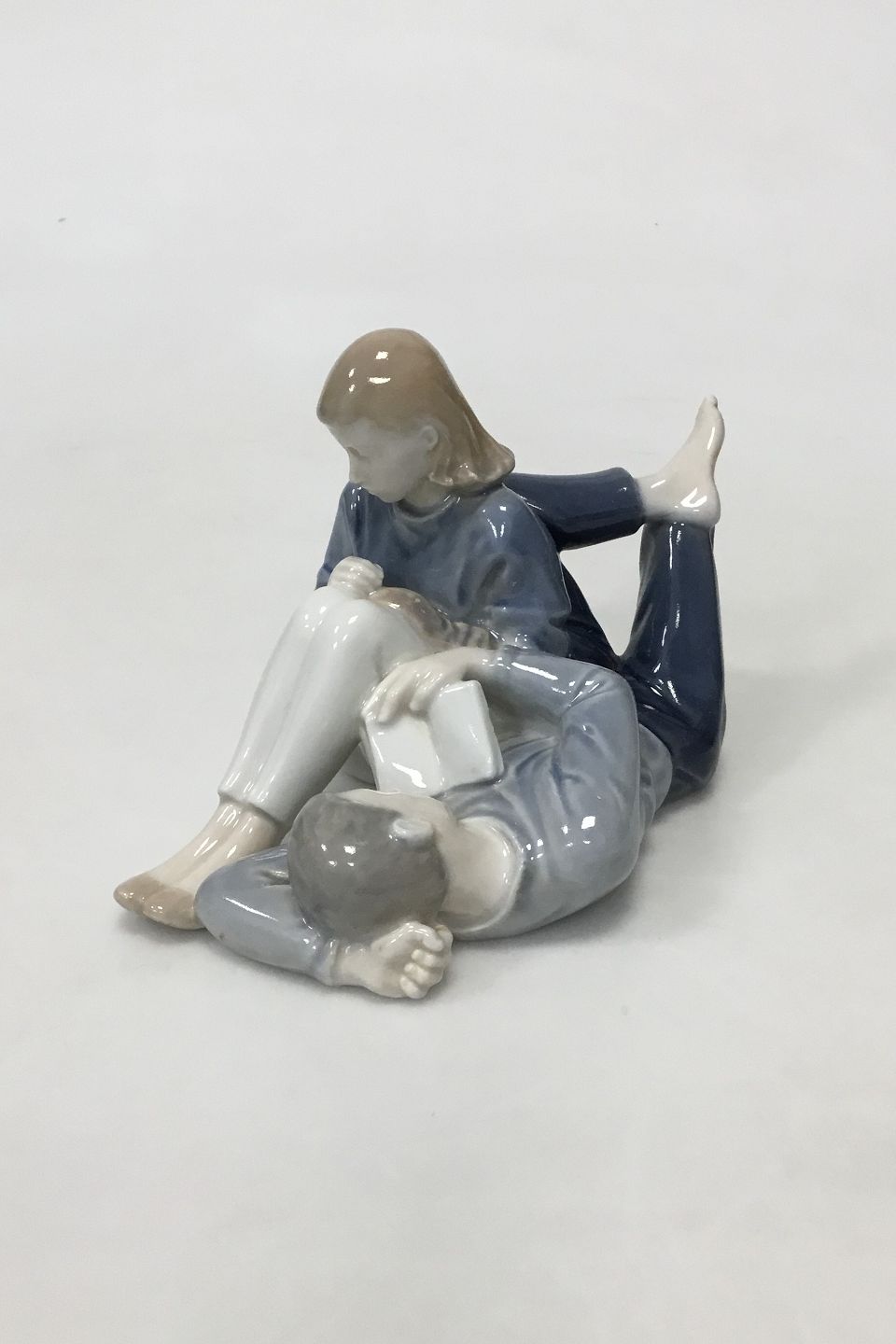 Royal Copenhagen Figur Teenagers med bog No 4649. Designet af John Galster. Måler 19 cm(7 31/64 in.)