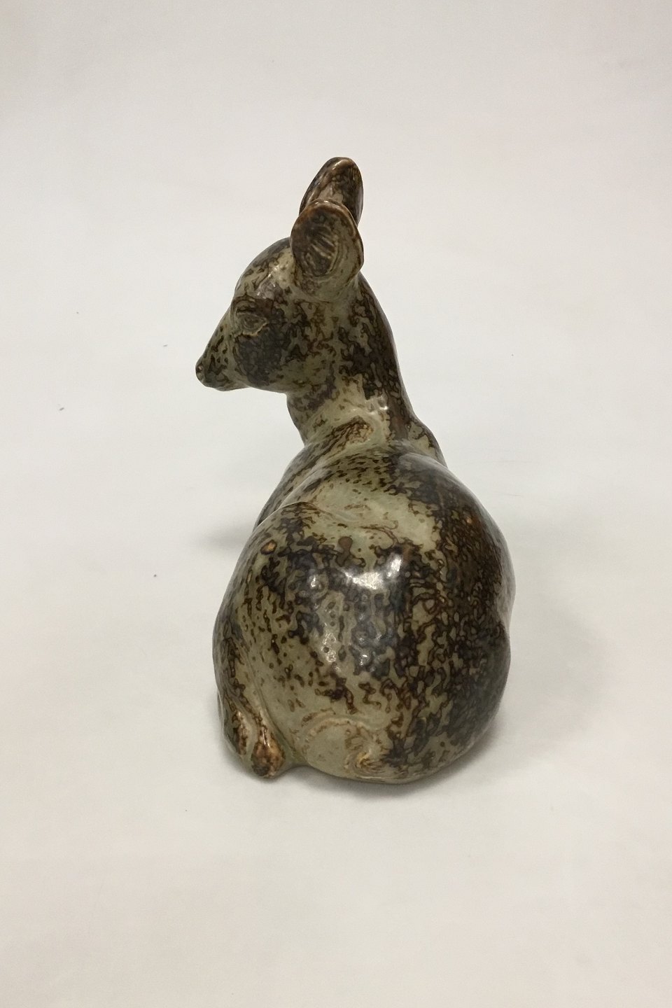 Royal Copenhagen Stoneware Figurine of lying young deer No 20506. Designed by Knud Kyhn. Measures 24 cm / 9 29/64 in.