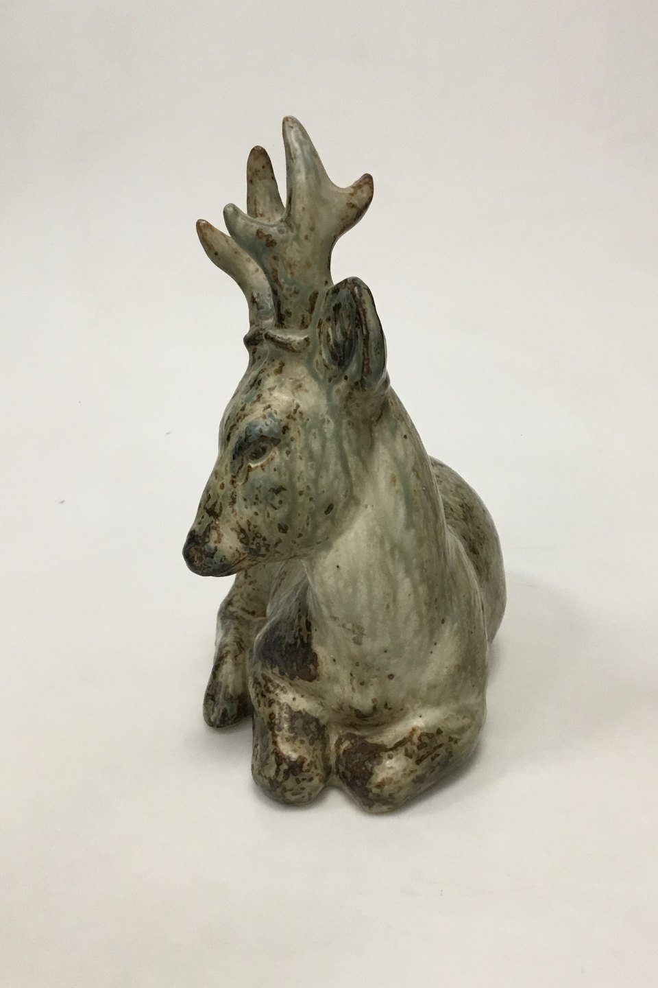 Royal Copenhagen Stentøjsfigur Liggende Hjort No 20507. Designet af Knud Kyhn. Måler 25 cm (9 27/32 in.)