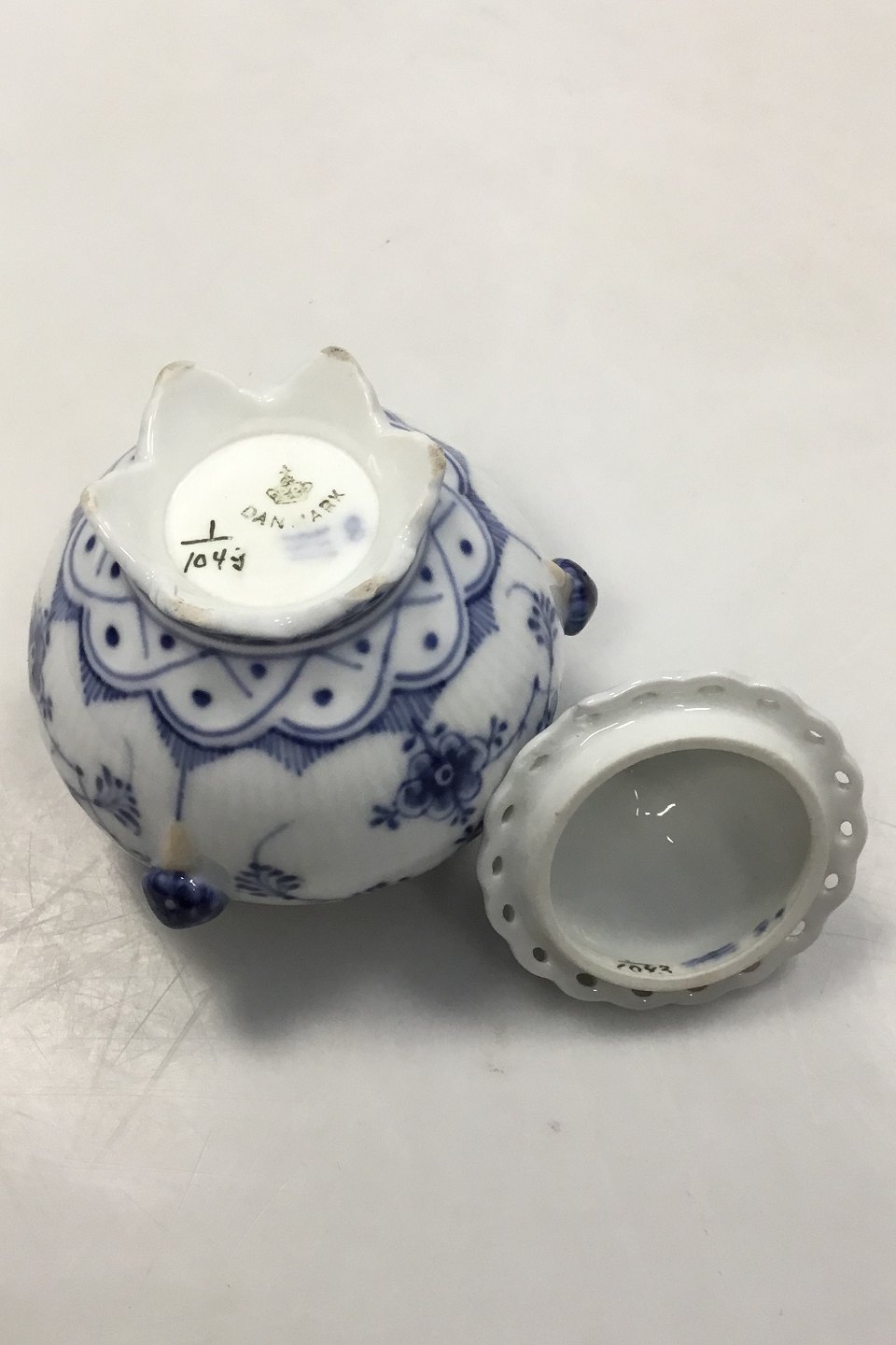 Royal Copenhagen Musselmalet Helblonde Sneglevase med låg No 1043. Der er afslag på følehorn, på foden og på kanten af låget. Måler 11,5 cm(4 17/32 in.)
