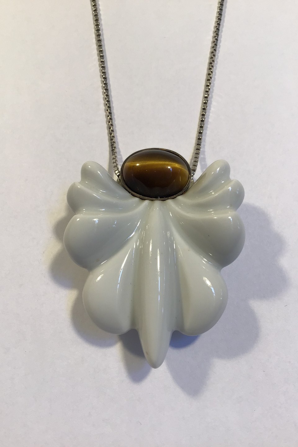 Royal Copenhagen Sterling Sølvkæde med Porcelænsvedhæng og Tigerøje