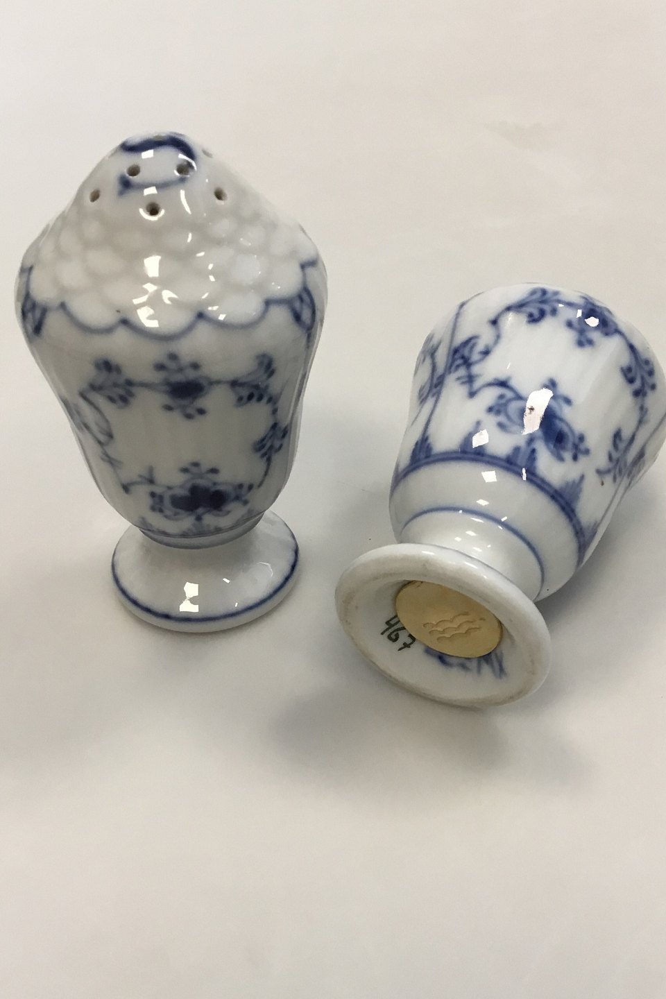 Royal Copenhagen Musselmalet riflet salt- og pebersæt No 467/480. Måler 8 cm(3 5/32 in.)