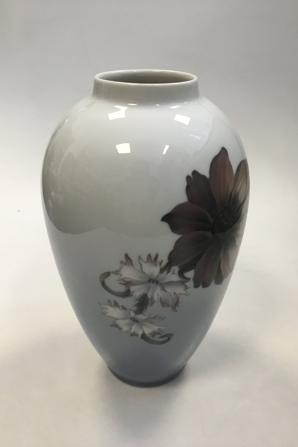 Royal Copenhagen Vase No 2660/1099 med Rødbrune og Hvide Blomster. 26 cm H. 1.Sortering. I fin hel stand.