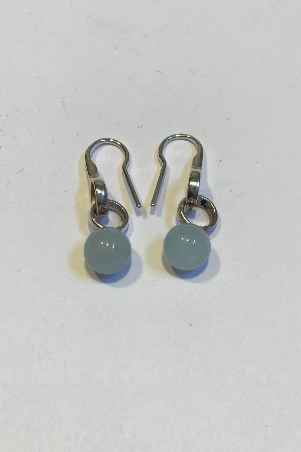 Georg Jensen Sterling Silver Ear Rings Sphere Aquamarine
