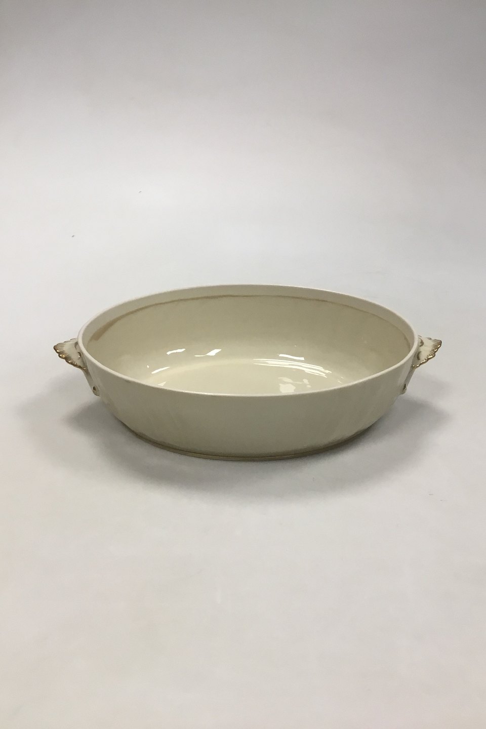 Royal Copenhagen Creme Svejfet med Guld (Stel 1235) Fad No 1702. Mangler låg. Måler 27 x 19 x 7 cm (10 5/8 x 7 31/64 x 2 3/4 in).