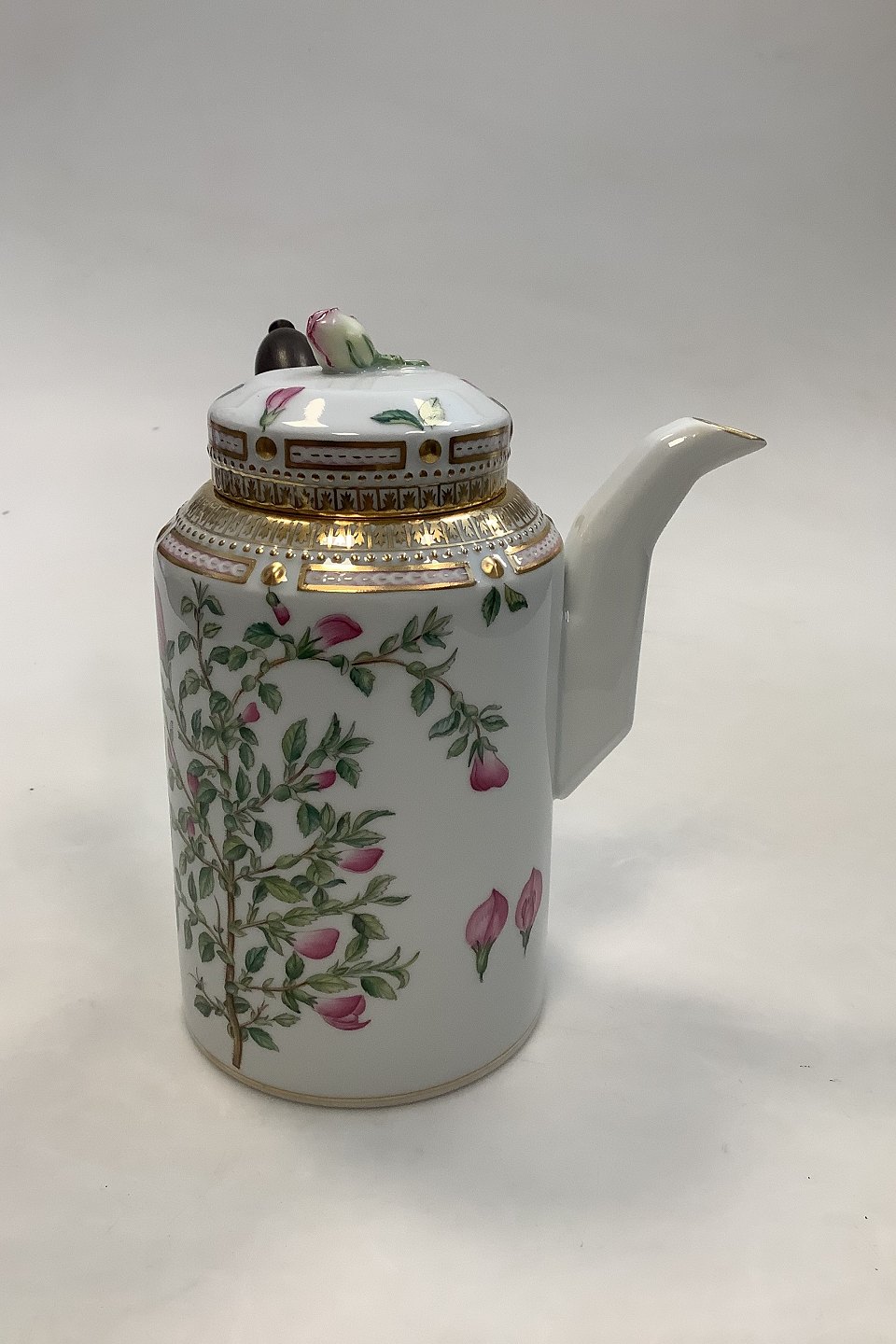 Royal Copenhagen Flora Danica Kaffekande No 128 (3620) Træhåndtag Latinsk Navn: Onosis spinosa Müll 1 sort Holder 6 kopper Måler H 17.5 cm