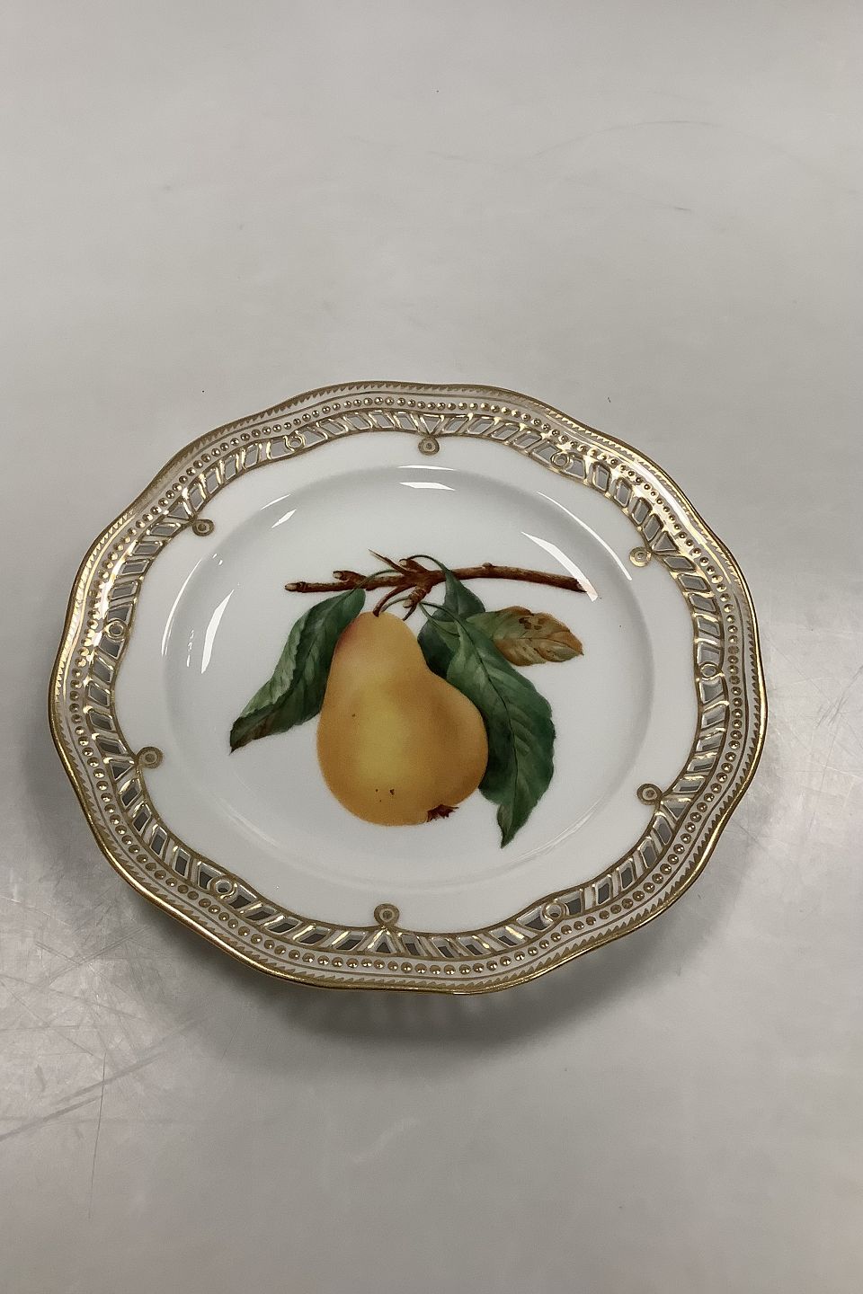 Royal Copenhagen Flora Danica Fruit Plate No 429/3584. Measures 22.2 cm / 8 47/64 in. 1st Quality. Pierced Border.