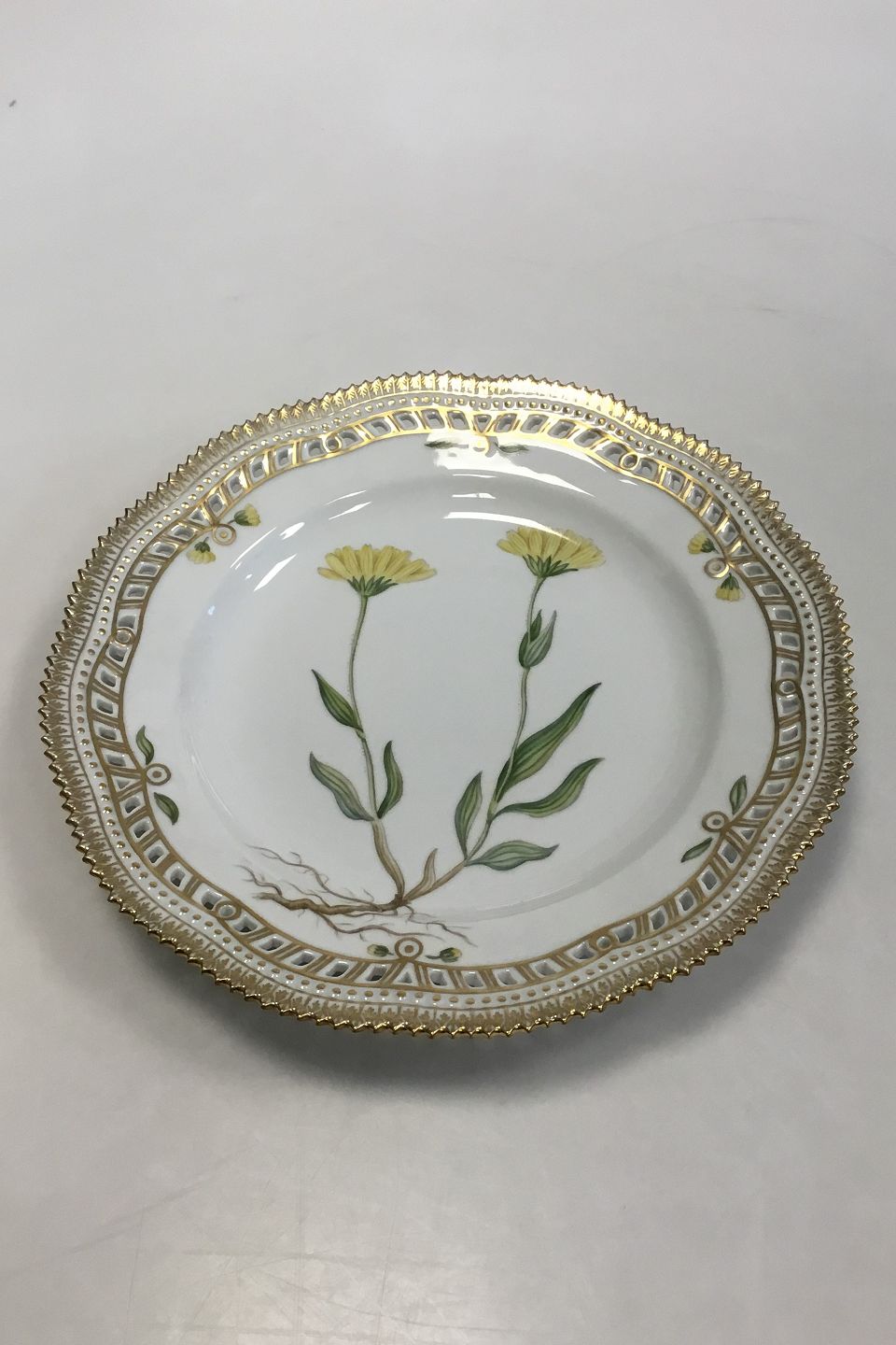 Royal Copenhagen Flora Danica tallerken med gennembrudt kant No 20/3553. Latinsk navn: Arnica angustifolia Vahl.. Måler 25,5 cm(10 3/64 in.)
