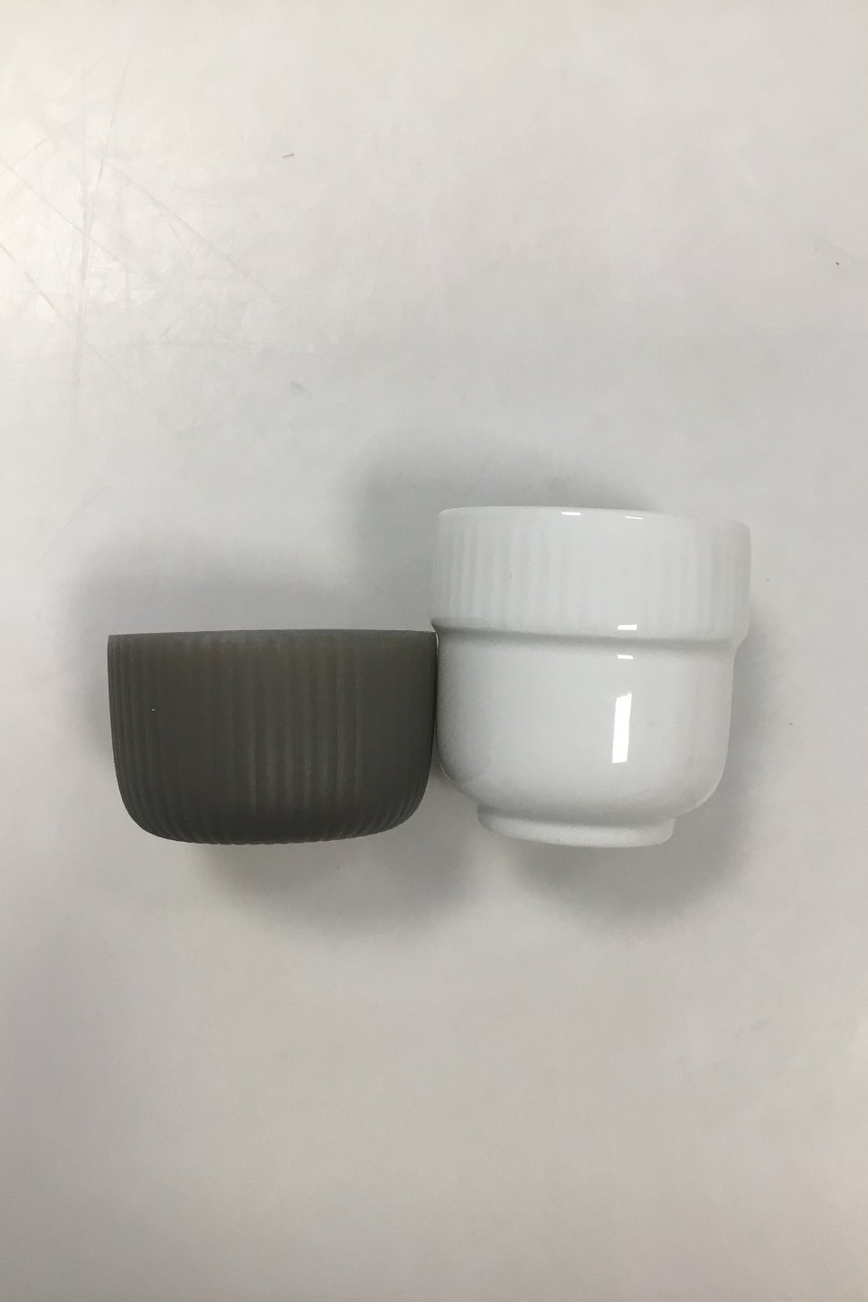 Royal Copenhagen Riflet Contrast Espressokop No 493. Måler 5,5 x 5,5 cm (2 11/64 x 2 11/64 in). Indhold: 8 cl. Farve: Grå.