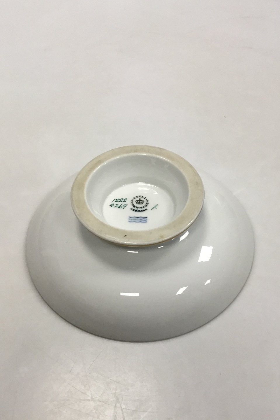 Royal Copenhagen Pattern No. 1222 Bowl on Foot No 9024. Measures 5.5 cm x 17 cm dia. / 2 11/64 in. x 6 11/16 in. dia.