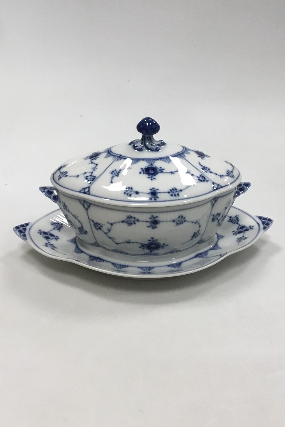 Royal Copenhagen Blue Fluted Sauce Boat with Lid No. 207. 1st Quality. Measures 23.5 cm / 9 1/4 in.