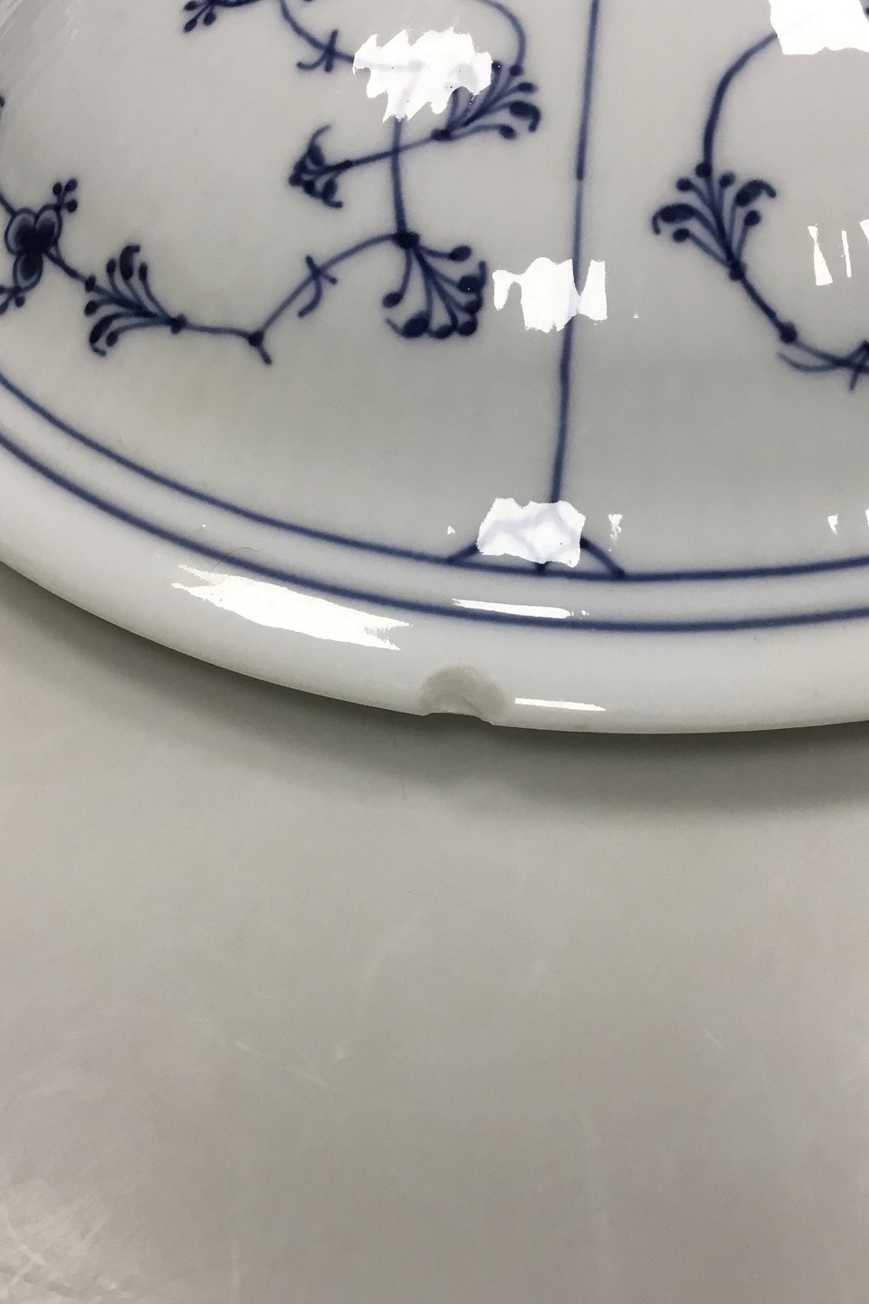 Royal Copenhagen Blue Fluted plain Lidded Bowl No 397. Measures 24 cm / 9 29/64 in. With a chip on the Lid