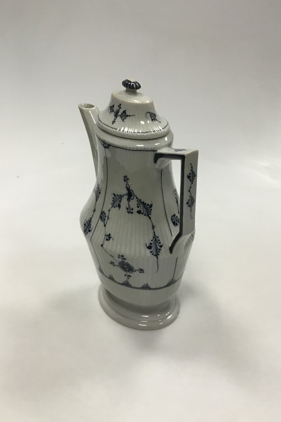 Royal Copenhagen Antik Musselmalet Kaffekande No 2029. Måler 25,5 cm (10 3/64 in.) 1. sortering. Med afslag på fod.