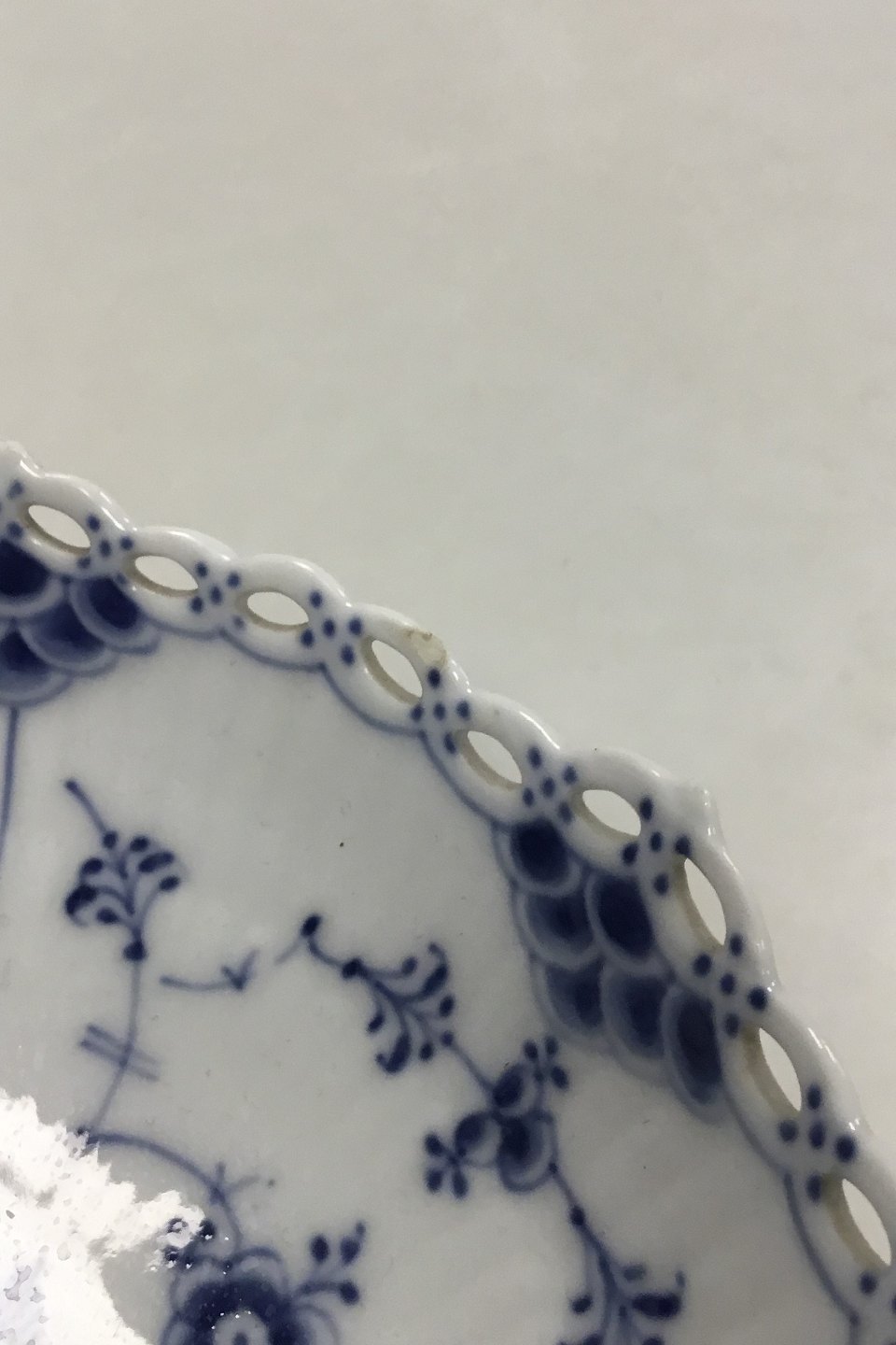 Royal Copenhagen Blue fluted Full Lace Bowl on Foot No. 1023. Measures 17.5 cm / 6 57/64 in. 1st Quality. With two chips on the rim.