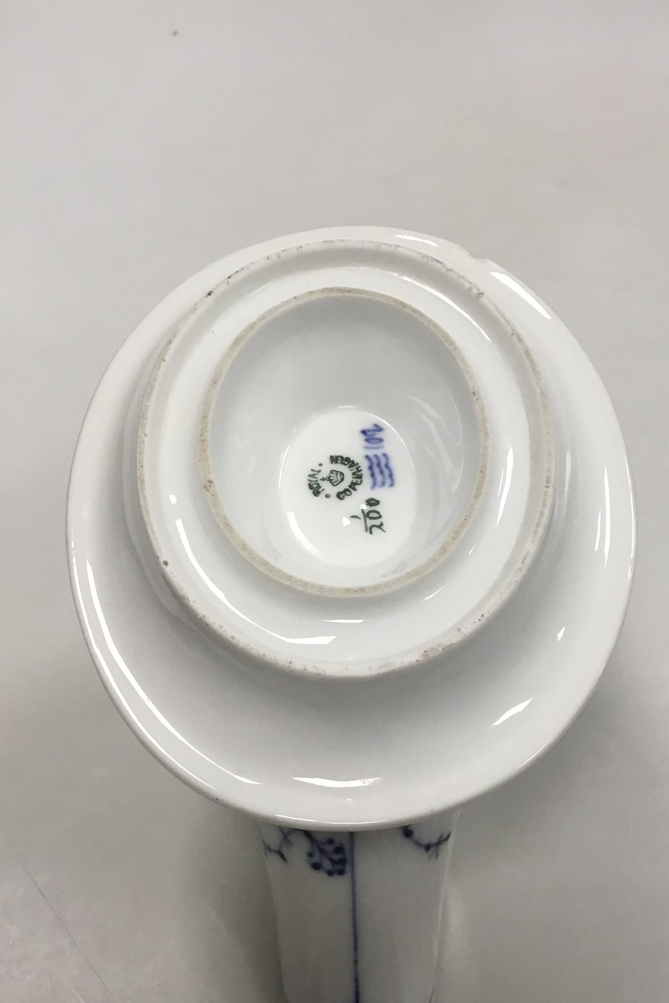 Royal Copenhagen Blue Fluted Plain Saucebowl with handle and saucer No 200. Measures 20 cm x 14 cm / 7 7/8 in. x 5 33/64 in.