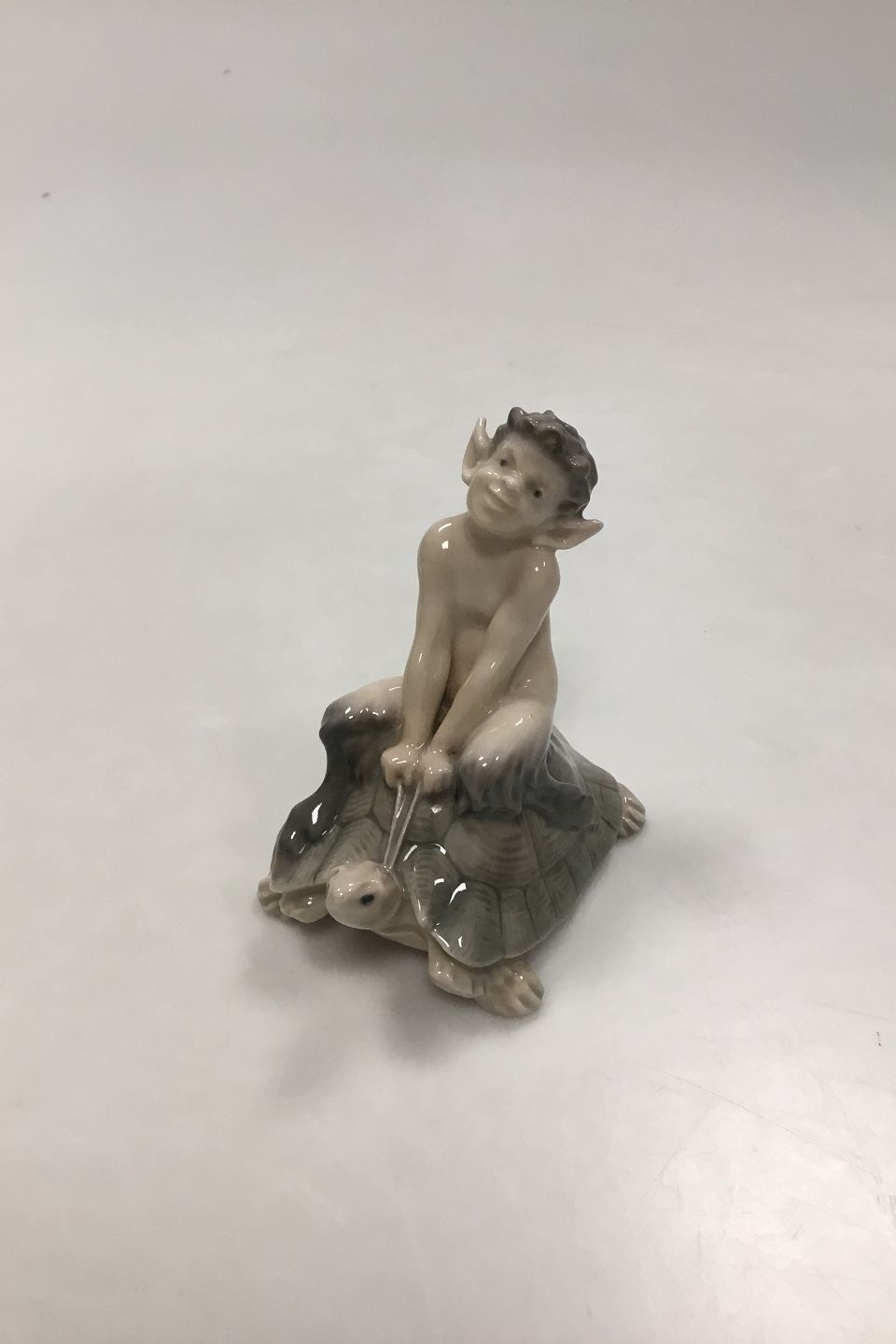 Royal Copenhagen Figurine of Faun on Tortoise No. 858. Designed by Chr. Thomsen in 1907. Measures 9.5 cm / 3 47/64 in.
